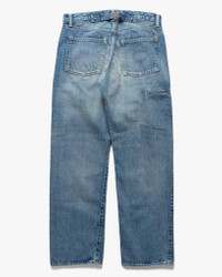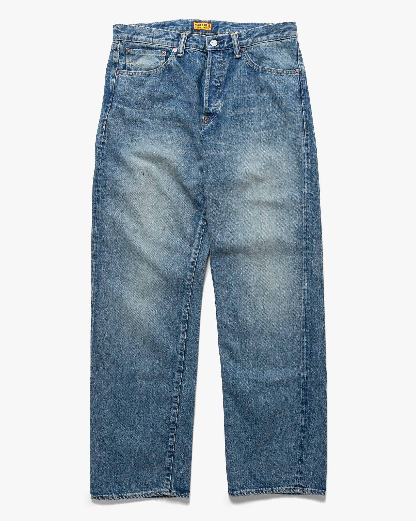 HUMAN MADE Strait Denim Pants merges Japanese craftsmanship with American workwear tradition. Fabricated from a light washed indigo denim, these straight-leg jeans offer a relaxed fit that feels both classic and modern. An added card pocket and rear buckle cinch enhance practicality, while subtle embroidery on the back pocket brings a playful touch of individuality. These timeless jeans are a wardrobe essential that exudes a casual yet elevated look. DETAILS - HM29PT003 - 100% cotton - Relaxed fit - Zipper fly - Buckle cinch on back - Classic 5-pocket design - Embroidered heart logo - Heart-button details - Added card pocket - Made in Japan