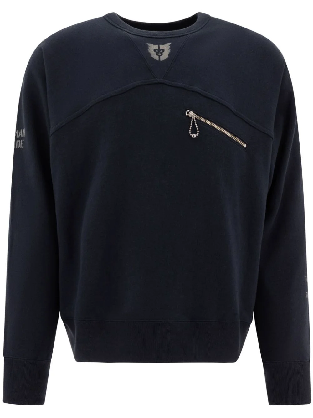 crew-neck sweatshirt Highlights - Oxford blue - Ribbed cuffs and hem - Zip-fastening chest pocket - Logo print at the sleeve Imported Composition Cotton 100%