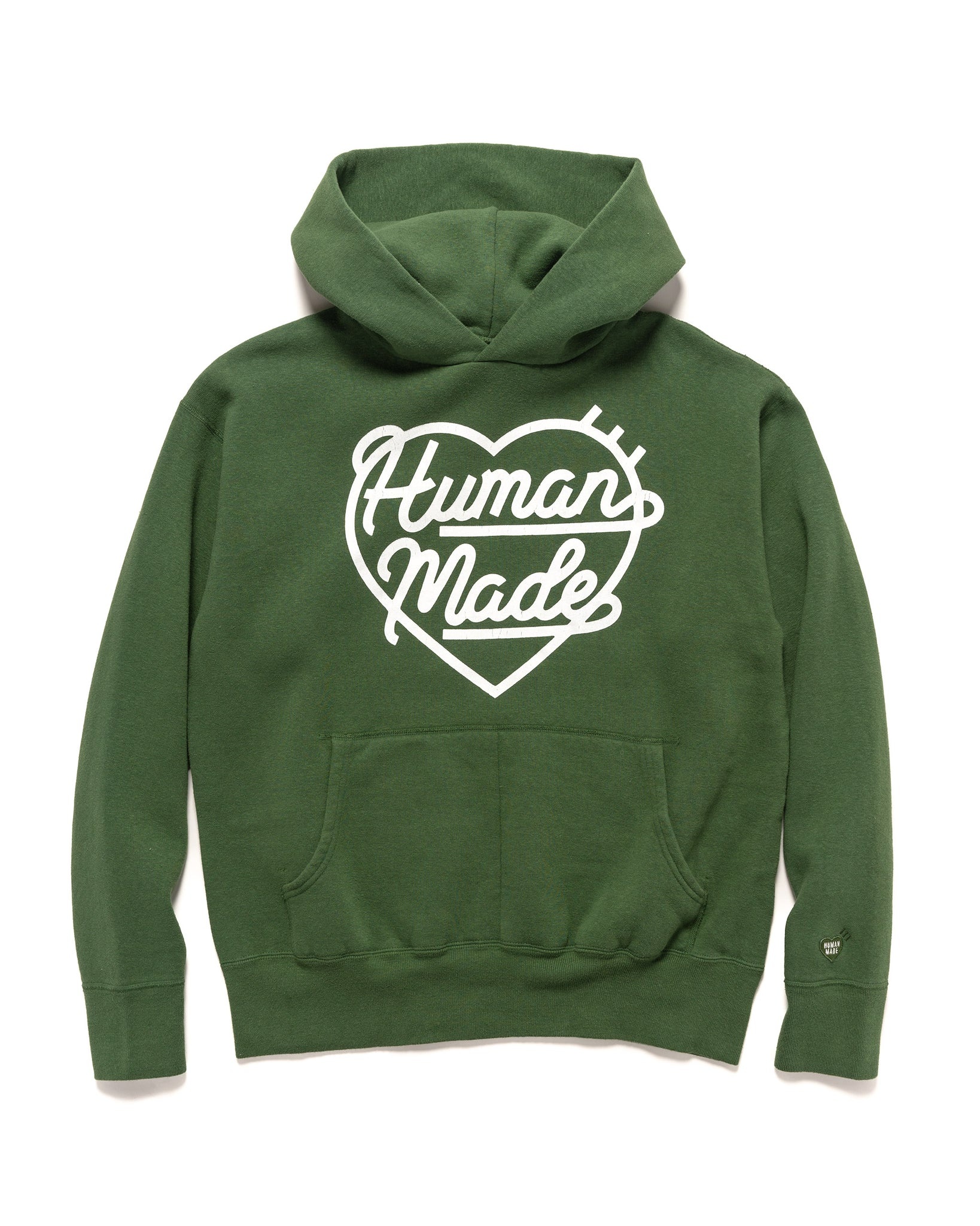 A hooded pullover sweater in a soft cotton fleece woven using the loopwheel method. With a large print on the chest and an embroidered logo patch on the sleeve. Including a kangeroo pouch pocket on the front with a ribbed hem and cuffs. Made in Japan. DETAILS - HM25CS008 - 100% cotton - Loopwheel woven - Graphic print at the chest - Sleeve embroidered patch - Ribbed cuffs and hem - Kangeroo pouch pocket - Made in Japan