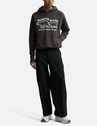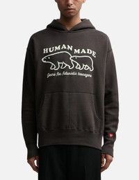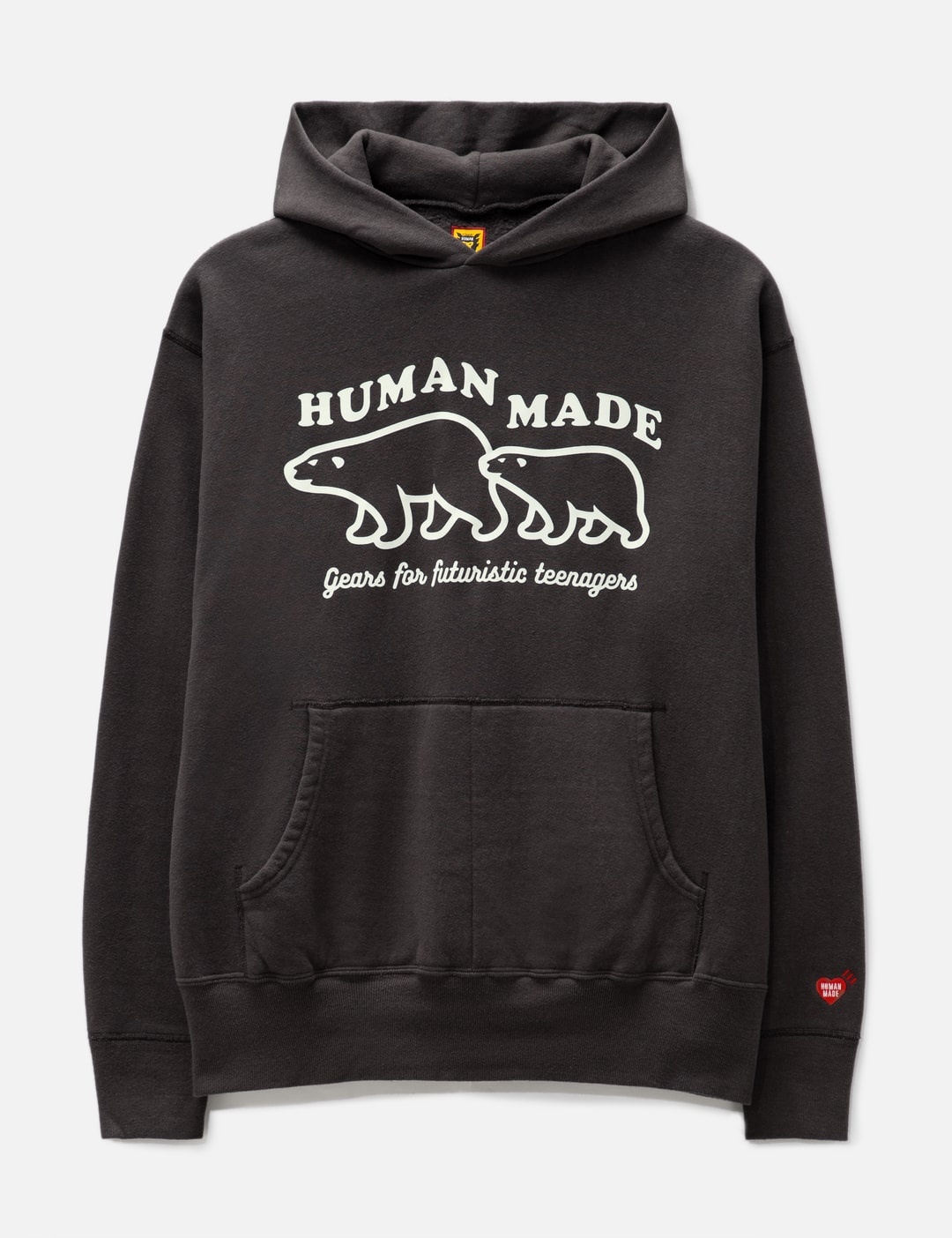 - Human Made - Tsuriami Hoodie - Relaxed Fit - Fixed Hood - Signature tagline embroidered on the front - Polar bear graphic - Pouch pocket with seam in the middle - Ribbed cuffs and hem - Heart motif patch on sleeve - Color: Black - Material: 100% Cotton - See more Hoodies and Clothing SIZING - Model wears size L - Model measures: Height 189cm, Chest 32”/81cm, Waist 27”/69cm, Hip 35.5”/90cm