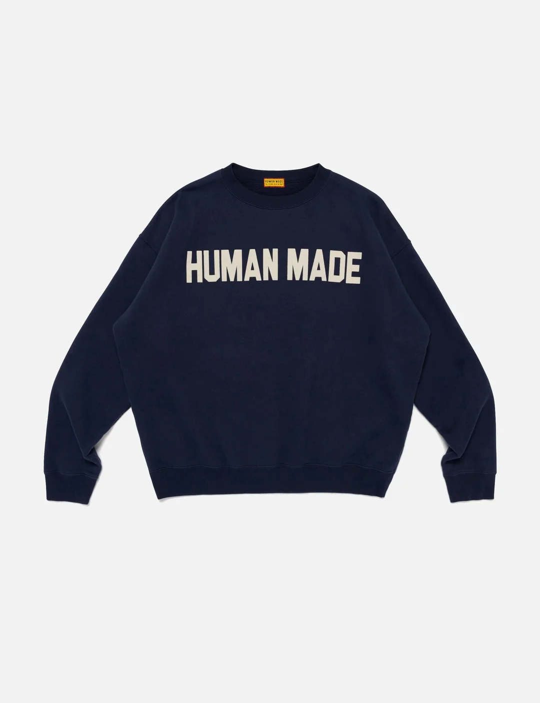 - Human Made - Wide Sweatshirt - Crewneck - Long sleeve - Logo and text flock printing - Ribbed trims - Soft lining - Color: Navy - Material: 100% Cotton - See more Sweatshirts and Clothing - Vendor Code: HM31CS004