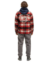 Classic workwear inspired buttonup shirt with an updated block check pattern in a hardy wool fabric. Features two chest pockets with custom heart shaped buttons, and iconic brand motifs embroidered across the front and back panel. Made in Japan. DETAILS - 26SH011 - 90% Wool, 10% Nylon - Regular fit - Buttonup placket - Chest pockets - Branding details throughout - Made in Japan