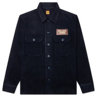 The Wool CPO Shirt in Navy offers a rugged yet refined look, crafted from a warm wool and nylon blend. Featuring a pointed collar, woven patches, and light padding, it balances style and practicality. Flap pockets and a button closure add functional detailing, making this shirt a versatile layering piece for cooler days. - 90% Wool, 10% Nylon - Pointed collar - Woven patches - Light padding - Flap pockets - Button closure - Printed logo on back - Style No: HM26SH008-NVY