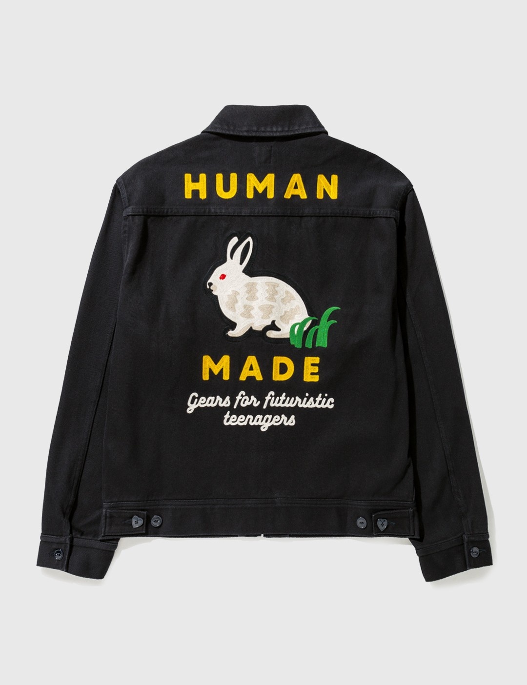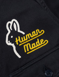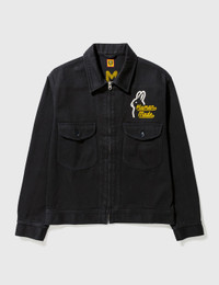 - Human Made - Zip Work Jacket - Cotton gabardine exterior - Zip closure - Two chest pockets - Embroidered logo at chest and rear - Buttoned cuffs - Color: Navy - Material: 100% Cotton - See more Jackets and Clothing SIZING - Model wears size XL - Model measures: Height 188cm, Chest 38”/96cm, Waist 30”/78cm, Hip 37”/94cm