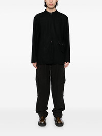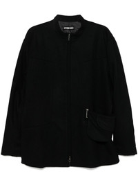 suit jacket with waist bag Highlights - Black - Wool blend - Stand up collar - Front two-way zip fastening - Long sleeves - Buttoned cuffs - Detachable waist bag - Straight hem Imported Composition Outer: Wool 90%, Cashmere 9%, Polyurethane 1% Lining: Polyester 100% SIZE & FIT Model measurements Height 6 ft 2 in(1.87 m) Bust/Chest 33.07 in(84 cm) Hips 35.43 in(90 cm) Waist 26.77 in(68 cm) FittingInformation Designed to be unstructured, offering a loose fit throughout Made from a midweight non-stretch fabric