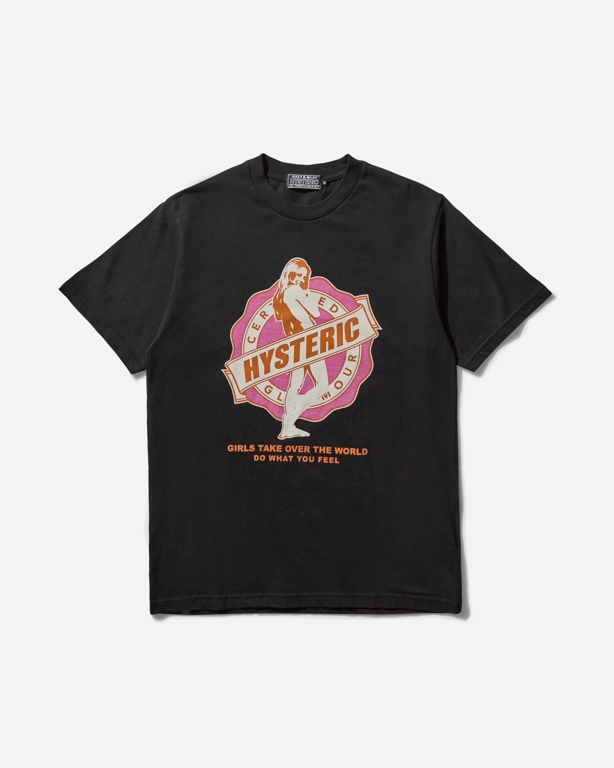 Hysteric Glamour Girls Take Over T-Shirt Black This black T-shirt features a graphic printed at the chest, ribbed collar, and regular fit. Made from 100% cotton and crafted in Japan. - 100% Cotton - Regular Fit - Ribbed Collar - Printed Graphic at Chest - Made in Japan - Style Code: 02251CT12 96 SIZE & FIT Size Body Shoulder Chest Sleeve S 65.5cm 45.5cm 46cm 20cm M 68cm 47cm 50cm 21cm L 70.5cm 48.5cm 54cm 22cm XL 73cm 50cm 58cm 23cm