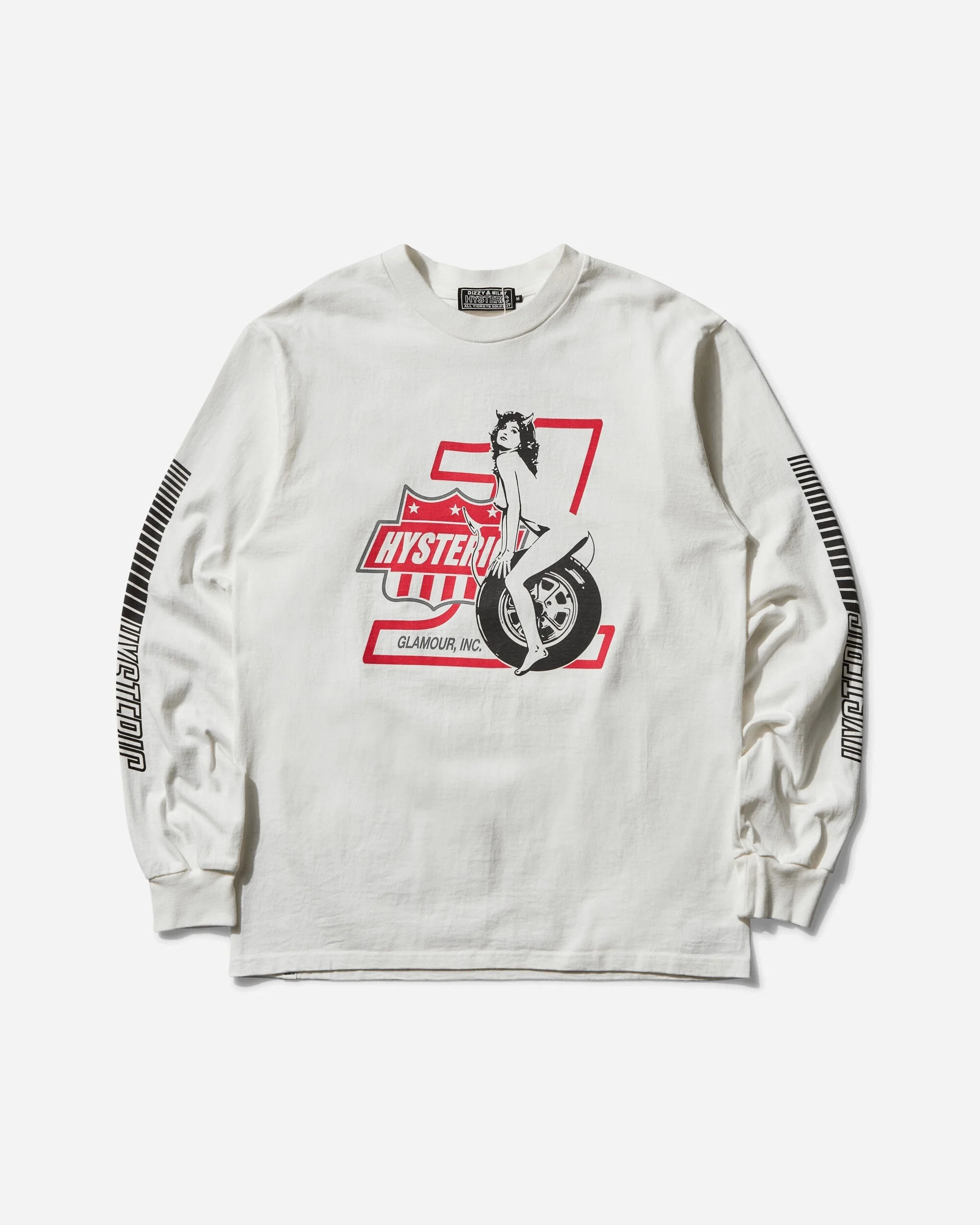Hysteric Glamour HG. Inc. Longsleeve T-Shirt White Made from 100% cotton with a rough texture, this long sleeve t-shirt features graphic printed at front and sleeves. - 100% Cotton - Regular Fit - Ribbed Collar and Cuffs - Graphic Printed at Front and Sleeves - Made in Japan - Style Code: 02251CL06 0 SIZE & FIT Size Body Shoulder Chest Sleeve S 68cm 44cm 48cm 60.5cm M 70.5cm 47cm 52cm 61.5cm L 73cm 50cm 56cm 62.5cm XL 75.6cm 53cm 60cm 63.5cm