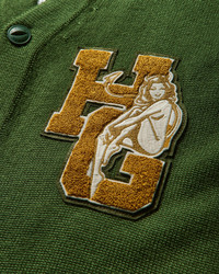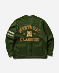 Hysteric Glamour See No Evil Cardigan Green Hysteric Glamour is a Japanese brand known for its bold and provocative aesthetic, that combines elements of rock 'n' roll, pop culture, and contemporary art. The collections frequently feature vibrant prints, extravagant graphics, and unique details. The brand has gained significant popularity in the Japanese fashion scene and has also garnered an international following. - 70% Acrylic, 30% Wool - Relaxed Fit - V-Neck - Button Closure - Branding Patches at chest and Back - Ribbed Cuffs and Hem - Style Code: ND04 B