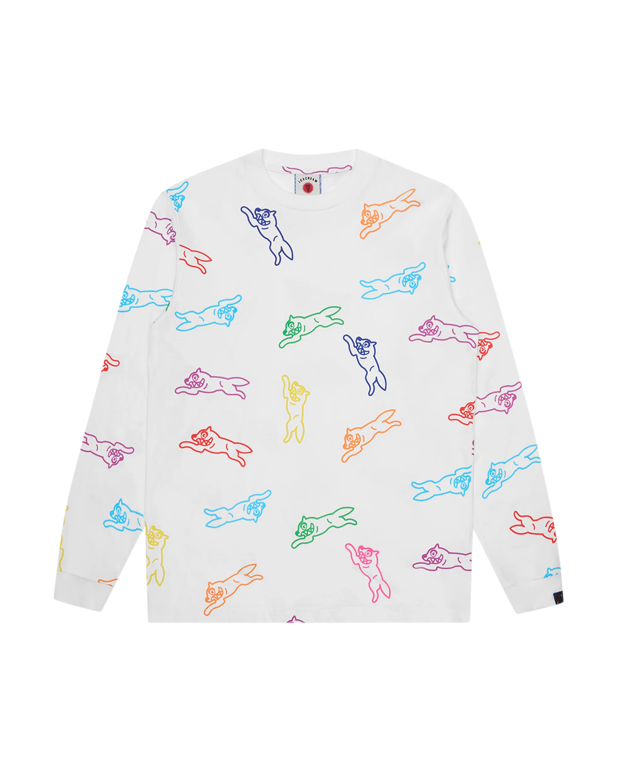 A/O Running Dog LS T-Shirt with all-over multi-colour logo print. - White - Regular Fit - All-over screen printed Running Dog multi logo - 100% Cotton Jersey 180GSM
