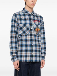 mascot-embroidered checked shirt Highlights - Royal blue - Front button fastening - Two chest patch pockets - Buttoned-cuff sleeves - Straight hem Imported Composition Cotton 90%, Polyester 10% SIZE & FIT Model measurements Height 6 ft 2 in(1.87 m) Bust/Chest 33.07 in(84 cm) Hips 35.43 in(90 cm) Waist 26.77 in(68 cm) FittingInformation Designed to be unstructured, offering a loose fit throughout Made from a midweight non-stretch fabric, this piece offers minimal elasticity when worn Washing instructions Hand Wash