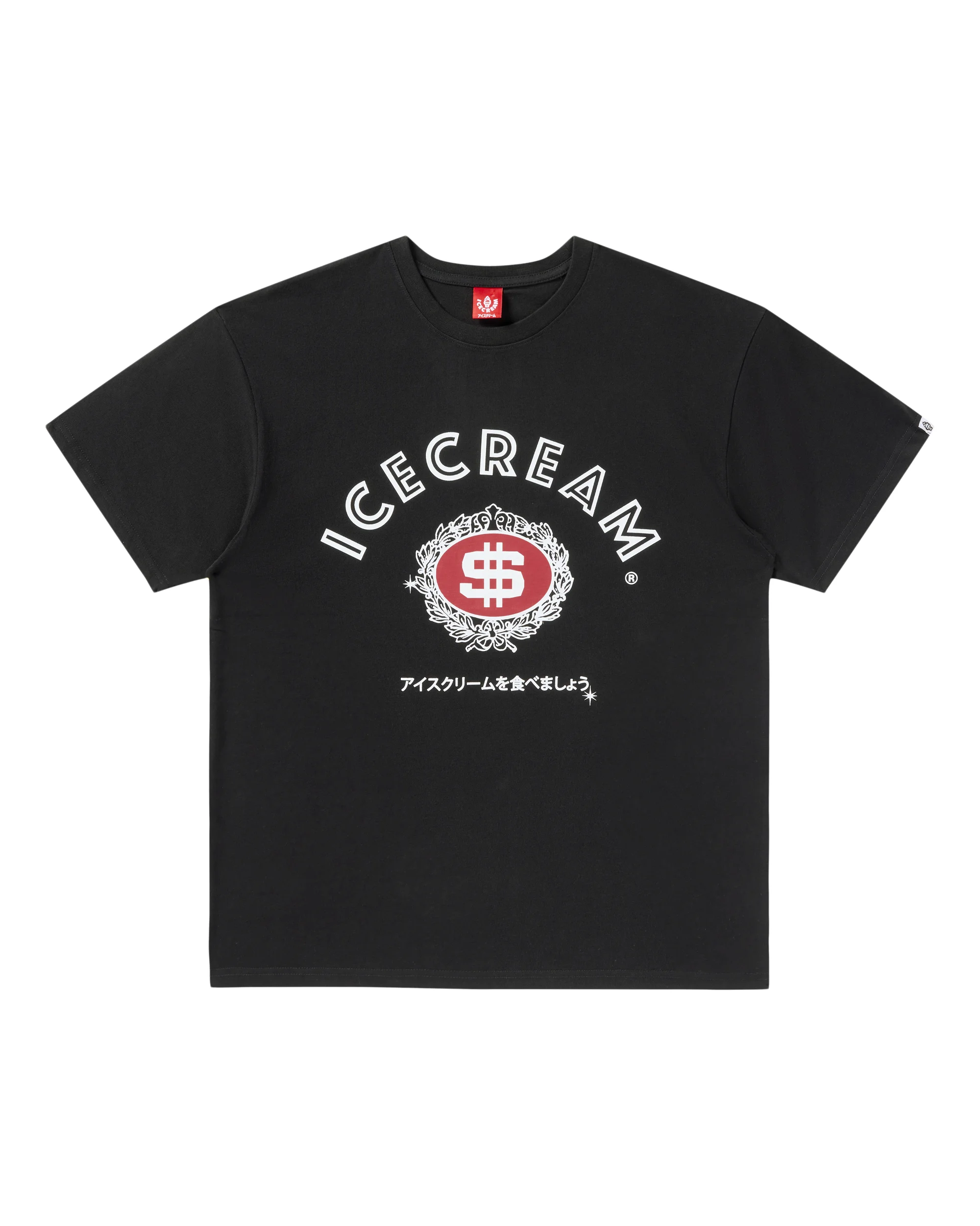The Dollar SS Tee features an Icecream logo and a red crest emblem with a bold dollar symbol at its center. - Black - Screen-printed graphics on the front and back - 100% Cotton