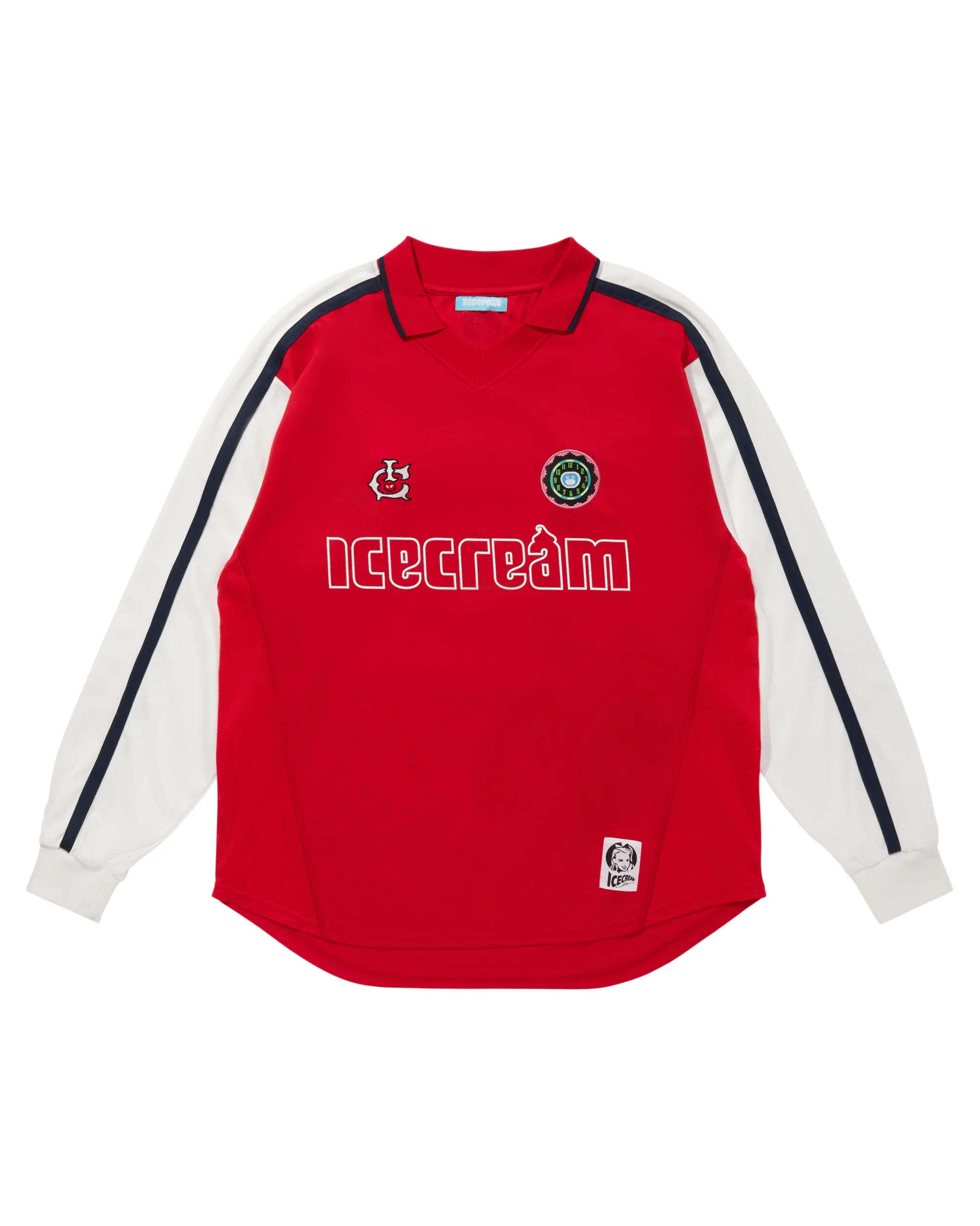 This long-sleeved soccer shirt features a bold logo and a patch on the chest. Made from lightweight, breathable material. The relaxed fit and long hem give it a stylish look. - Red - 100% Polyester