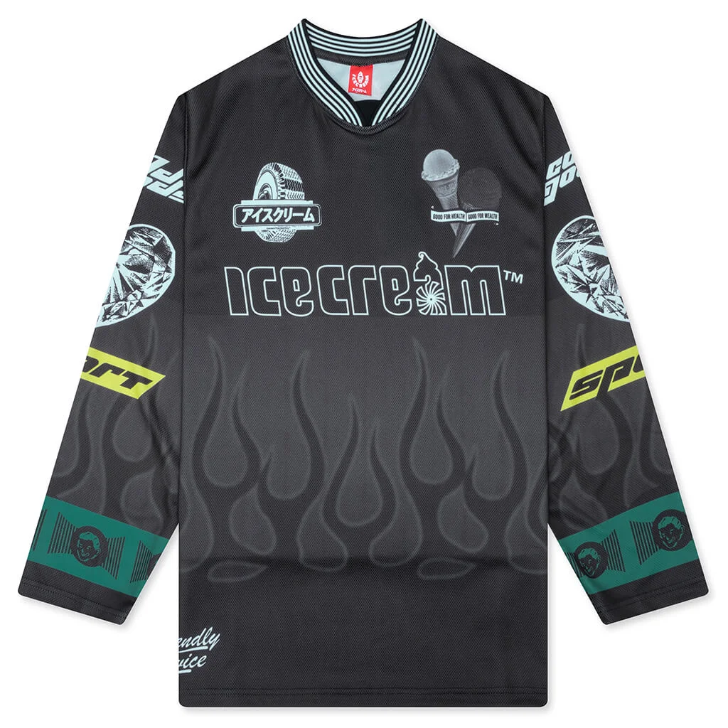 Made from polyester, the Icecream Good Food L/S Jersey provides light and breathable comfort. Decorated with screen-printed graphics, Icecream branding is showcased throughout the design. Finished with a ribbed V-neck for added comfort. - 100% Polyester - Ribbed V-neck - Screen-printed graphics - Style No: 461-1310-001