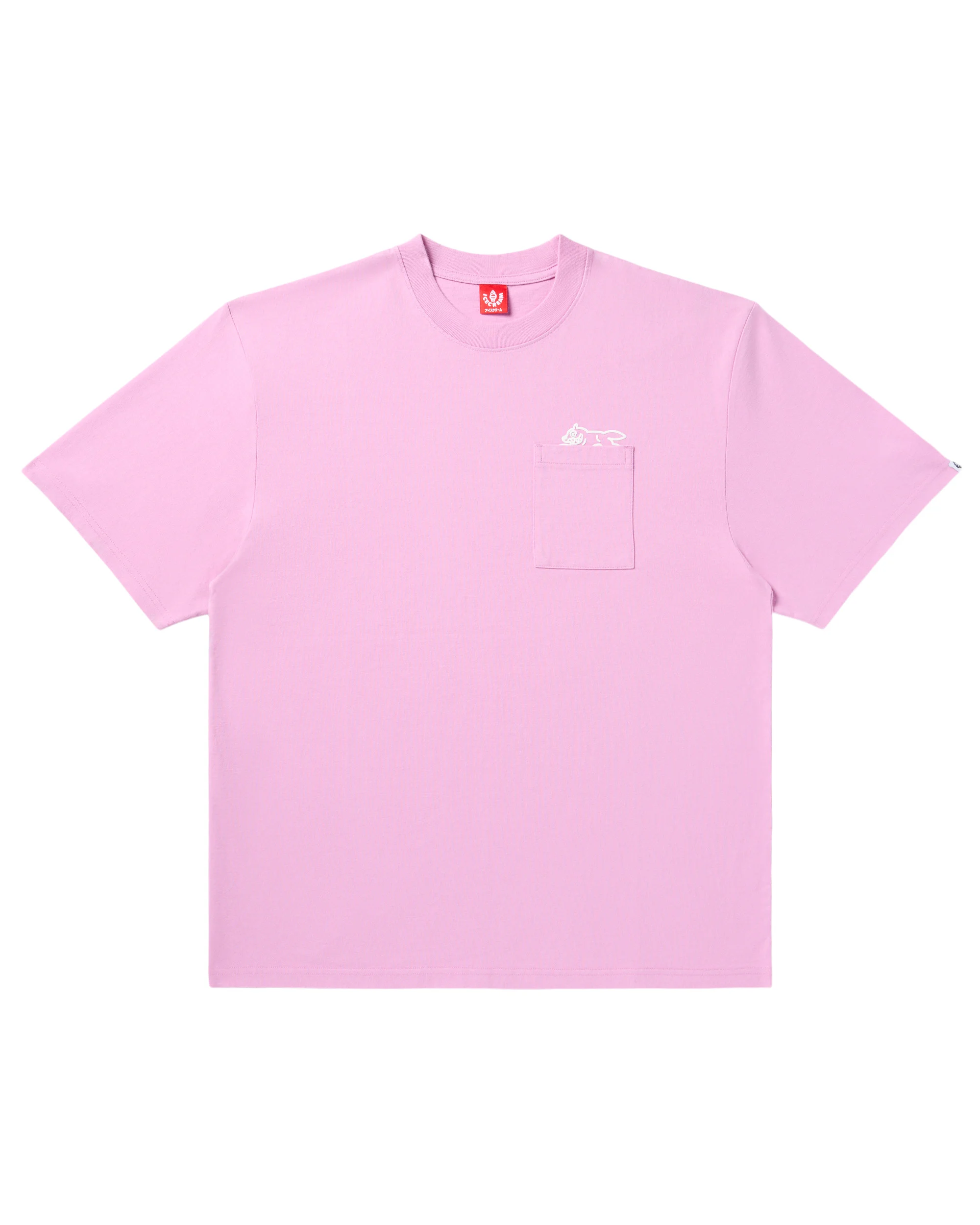 This tee showcases a Running Dog graphic positioned above the left chest pocket. - Orchid - Oversized fit - Running Dog graphic printed above pocket - 100% Cotton