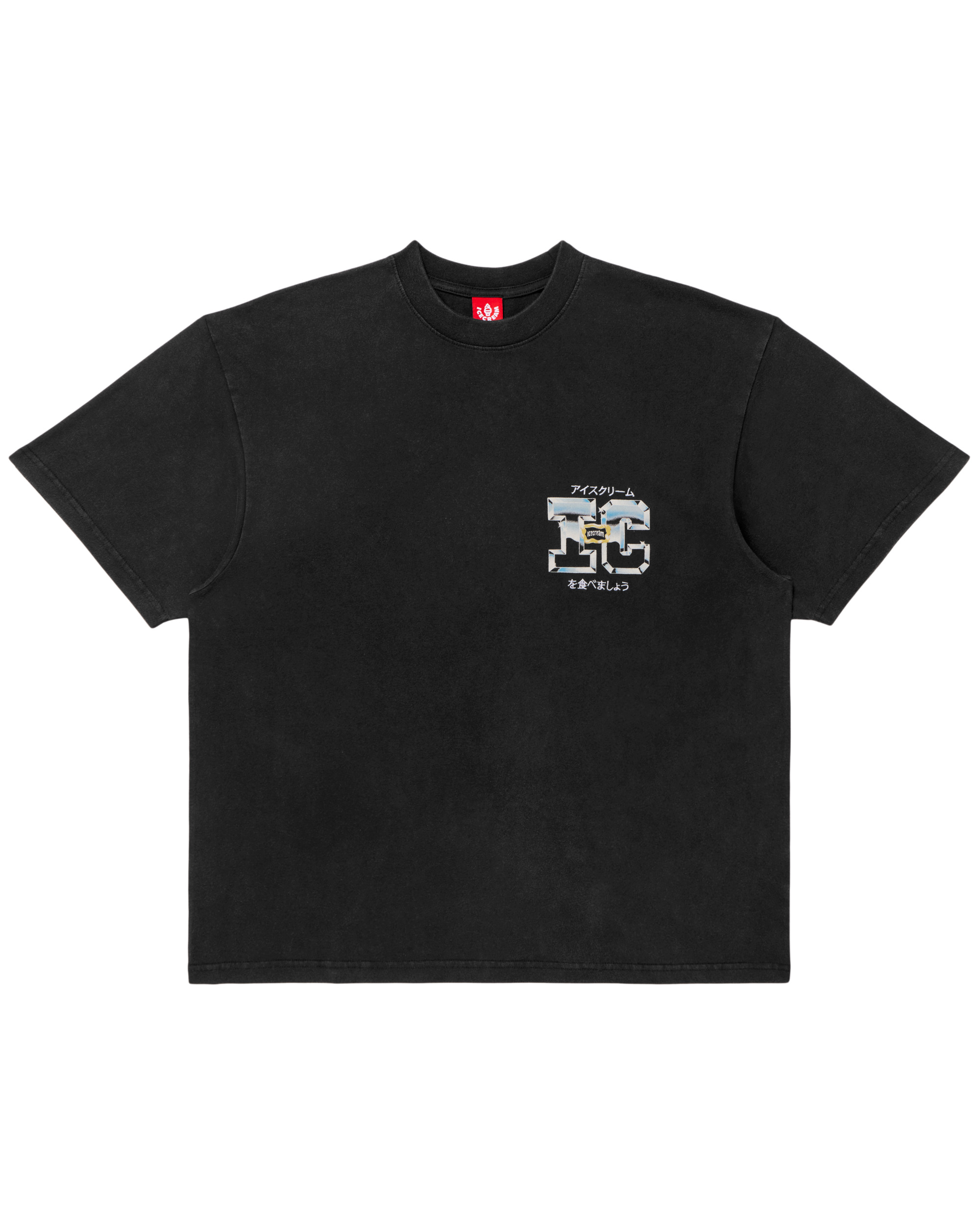 T-shirt with heavy washing, soft hand process print, and chain stitch embroidery. - Cropped, boxy fit - 100% Cotton