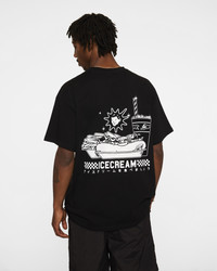 This tee displays the Soft Serve graphic on the front left chest, while the back features a collection of food illustrations, all enhanced with ICECREAM branding elements throughout. - Black - Screenprinted graphics on the front and back - 100% Cotton