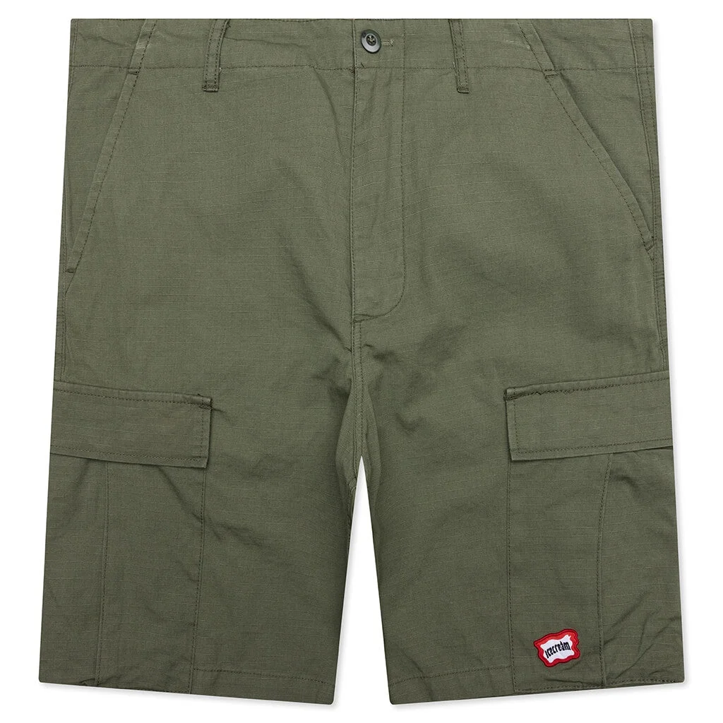 Introducing the Destro Cargo Shorts from Icecream. Constructed with 100% cotton, featuring a button fly, belt loops, and adjustable straps at the waistband for a customizable fit. A variety of pockets provide functionality and storage. The ensemble is tied together with a patch design on the back, patch logo tab, and a woven label for signature branding. 451-3111-284 - 100% Cotton - Button fly closure - Belt loops - Adjustable straps at waistband - Side-seam pockets - Cargo pockets - Rear flap pockets - Patch design and logo tab - Woven label - Style No: 451-3111-284