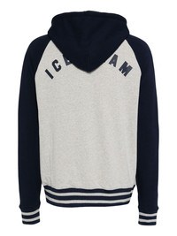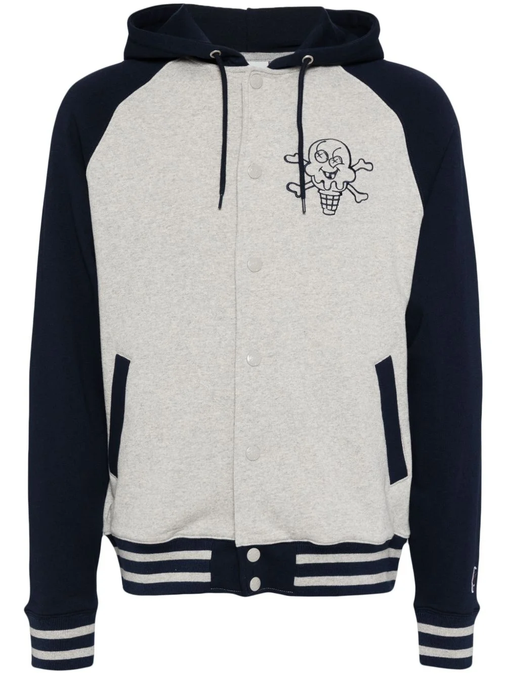 logo-print cotton jacket Highlights - Navy blue/grey - Cotton - Front button fastening - Logo print at the chest - Drawstring hood - Two side welt pockets - Logo print to the rear - Long sleeves - Ribbed cuffs and hem Imported Composition Cotton 100%