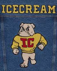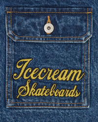 The Mascot Denim Trucker Jacket features a heavily embroidered ICECREAM Skateboards emblem on the right chest pocket and the lower body area; a branded large embroidery on the left chest completes the front design. The back of the jacket showcases a large, all-over branded graphic, representing the embroidered ICECREAM mascot and ICECREAM logo. - Mid Wash Blue - Regular fit - Embroidered ICECREAM Skateboards emblem on the right chest - Embroidered ICECREAM Skateboards emblem on the lower left front - Branded chenille patch on the left side of the chest - Chenille ICECREAM mascot patch on the back - Embroidered ICECREAM logo all-over the back - Branded buttons - 100% Cotton