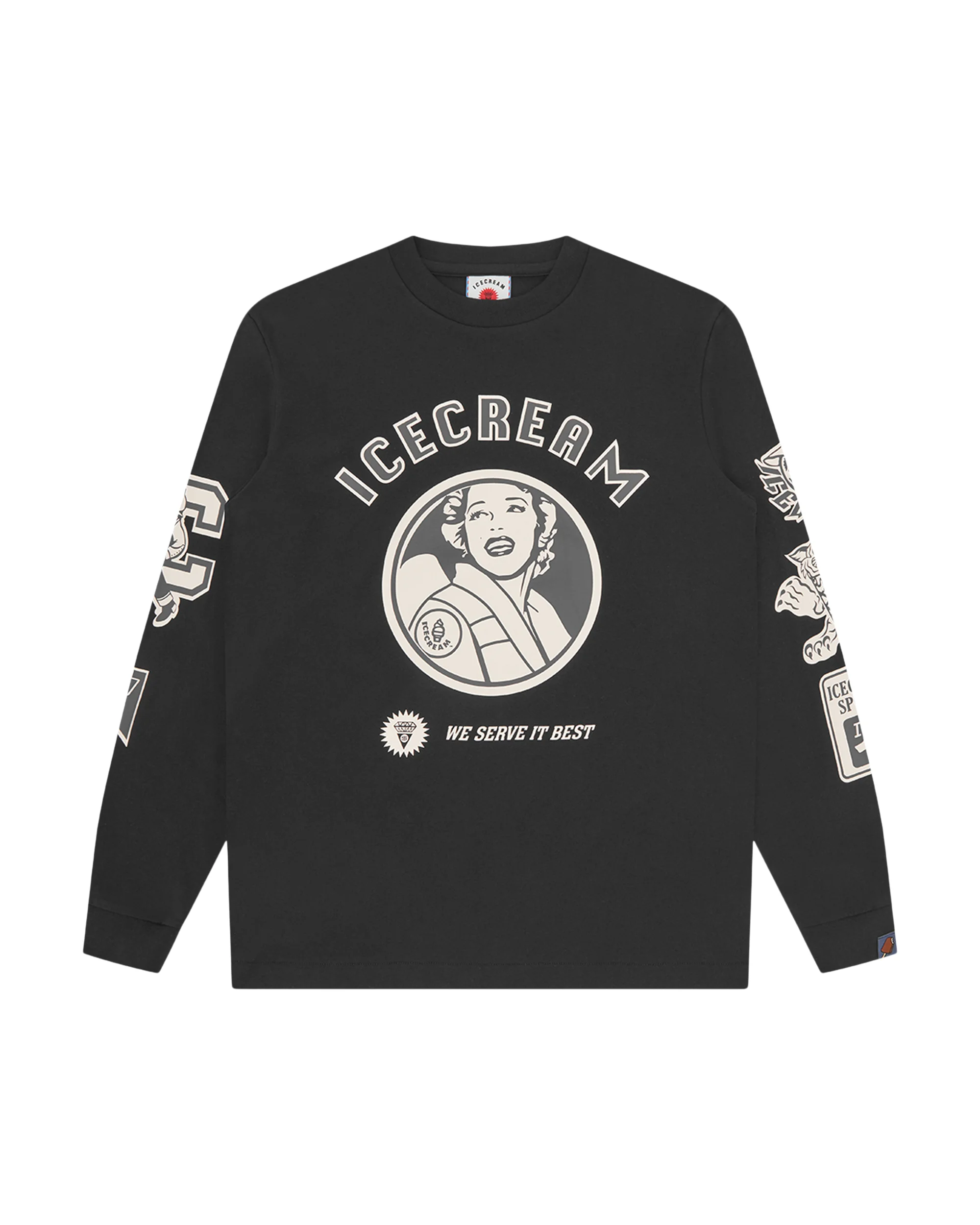 This Multi Graphic LS T-shirt is made with 100% cotton and it is detailed with ICECREAM graphics on both the sleeves, at chest and all-over the back. - Black - Regular Fit - Vintage ink screen printed artworks all-over the tee - 100% Cotton