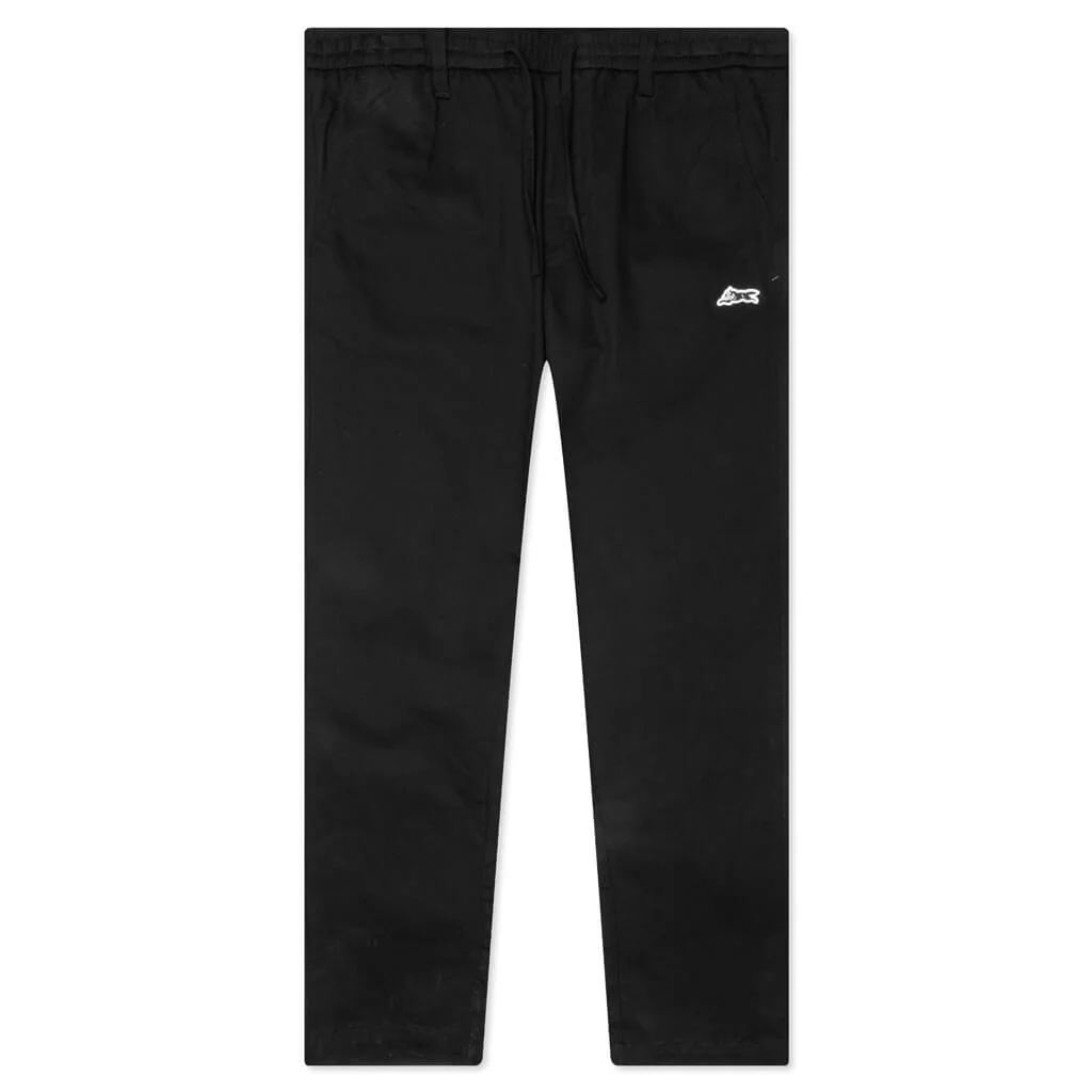 The Prep Pants (Strawberry Fit) in Black are crafted from cotton twill, offering both durability and comfort. Featuring an elastic drawstring waist for a custom fit, these pants come in a straight leg silhouette. Functional details include front slant pockets, a back welt pocket, and a Running Dog woven label for a subtle brand touch. Perfect for everyday wear. - 100% cotton twill - Elastic/drawstring waist - Straight leg fit - Running Dog woven label - Front slant pockets; back welt pocket - Style No: 441-7105-1
