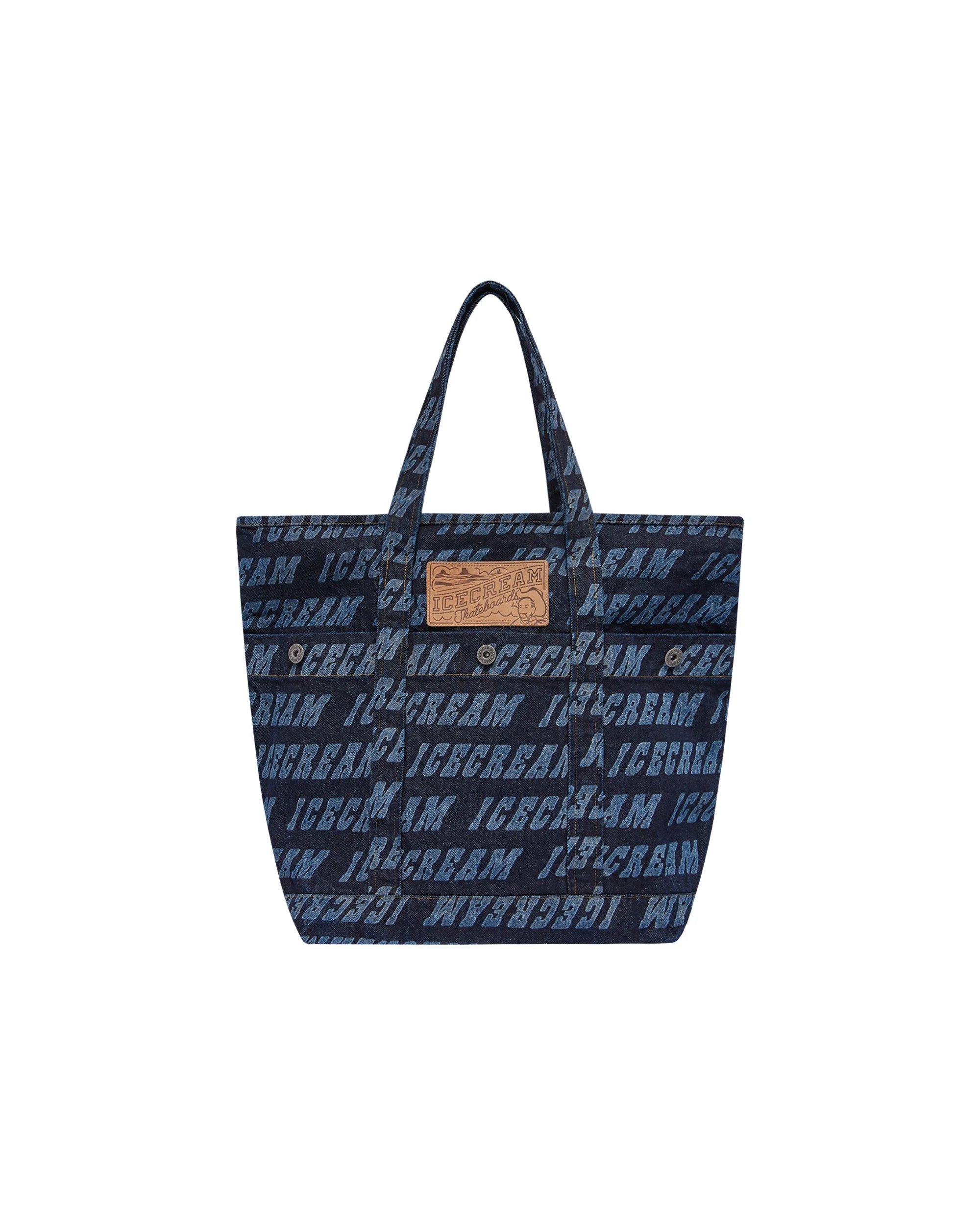 The Repeat Logo Denim Tote Bag presents an all-over repeated ICECREAM logo and branded tag to the front. - Indigo - All-over repeated ICECREAM logo - Zip-closure - Branded ICECREAM leather tag - 40cm (H) x 50cm (W) x 20cm (D) - 100% Cotton