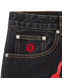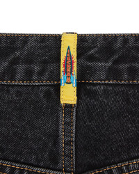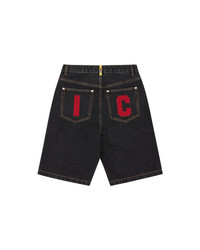 Running Dog Denim Shorts, featuring the iconic screen-printed running dog graphic on the front, embroidered IC signet, embroidered "IC" lettering on the back pockets, and a zip-fastened fly. - Black - 100% Cotton - Screen print Running Dog graphic at front - Zip-fastened - Made in China