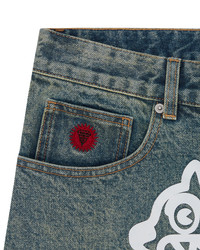 Running Dog Denim Shorts, featuring the iconic screen-printed running dog graphic on the front, embroidered IC signet, embroidered "IC" lettering on the back pockets, and a zip-fastened fly. - Heavy Wash Blue - 100% Cotton - Screen print Running Dog graphic at front - Zip-fastened