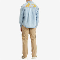 Vintage inspired, this ICECREAM Chainstitch Light Wash Denim Shirt is dependable all day long. With two patch pockets sitting on the chest, this piece is elevated with contrast topstitching, as seen with the signature Astro logo on the reverse. - 100% Cotton - Classic Collar - Button Closure - Buttoned Cuffs