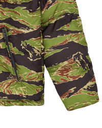 These Tiger Stripe Cargo Work Jacket feature the Running Dog on the chest and the Running Dog printed on the back. - Camo - All-over Tiger Stripe camo print - Running Dog at chest - Running Dog printed at the back - 100% Polyester