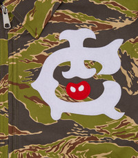 These Tiger Stripe Cargo Work Jacket feature the IC patch at the front and Icecream on the back. - Camo - All-over Tiger Stripe camo print - Applique IC detailing at the front - Applique ICECREAM lettering at the back - Shell 80% Polyester, 20% Cotton; Lining & Filling 100% Polyester