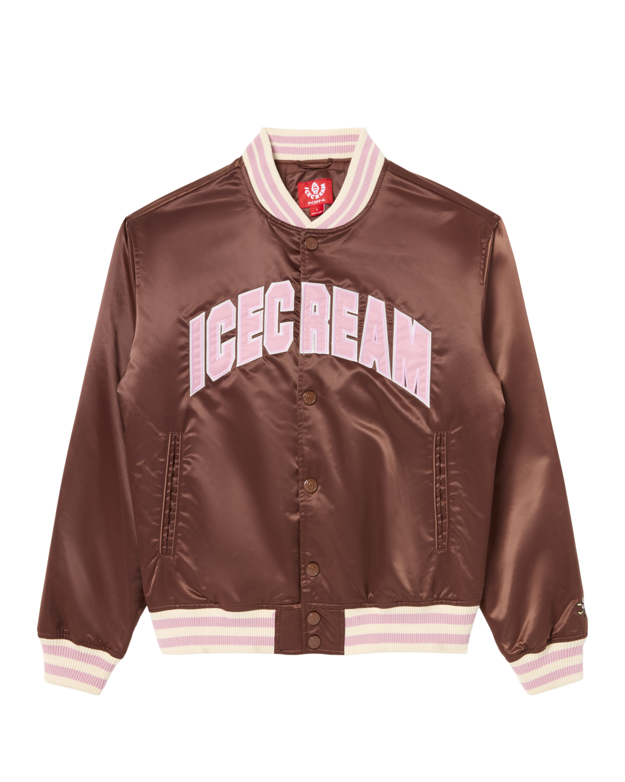 Satin varsity jacket featuring ICECREAM graphic embroidery on the front chest. - 100% Satin Nylon