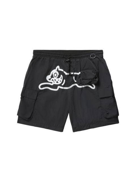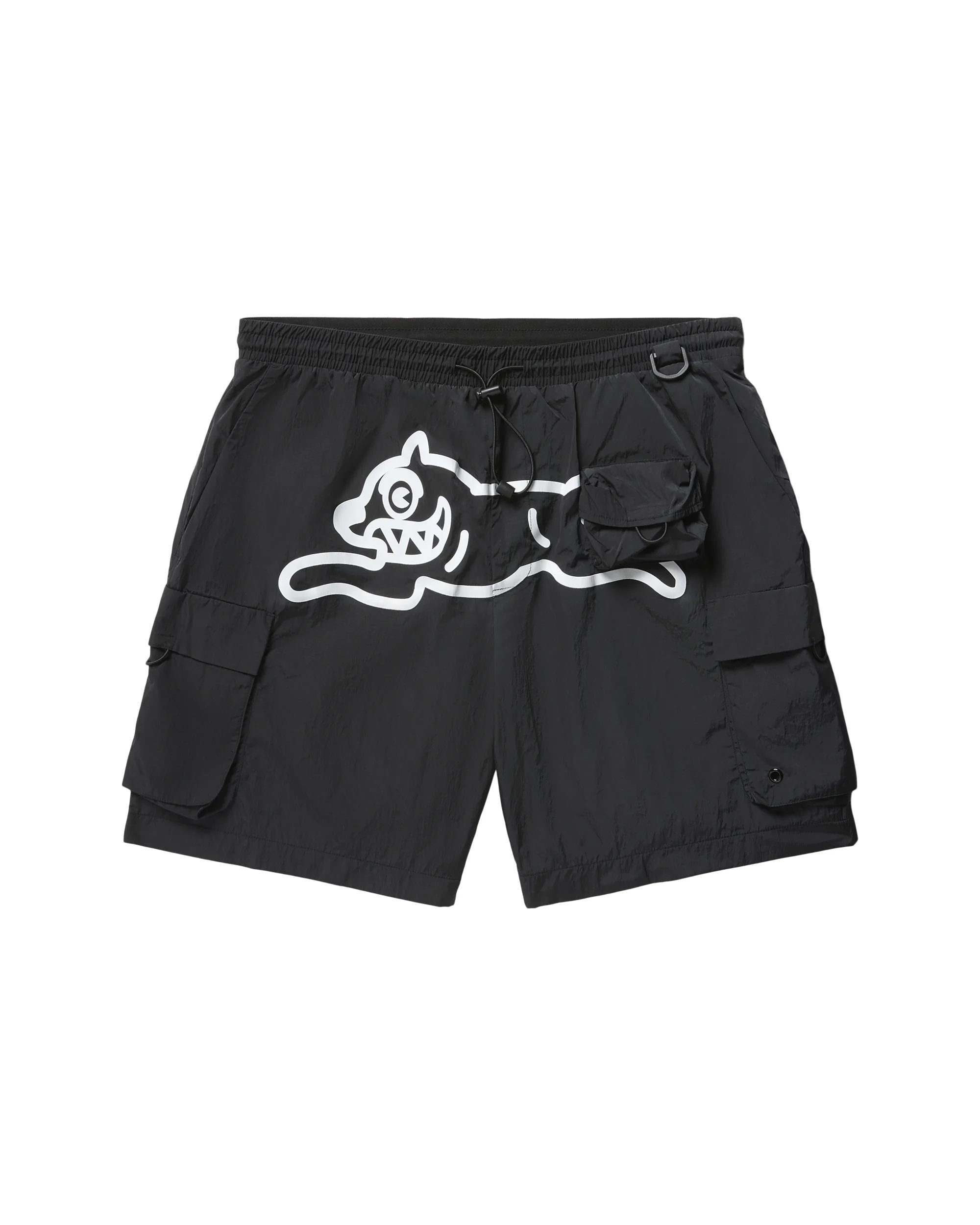 Nylon cargo shorts featuring a Running Dog graphic, mesh interior and pocket details. - Black - 100% Nylon