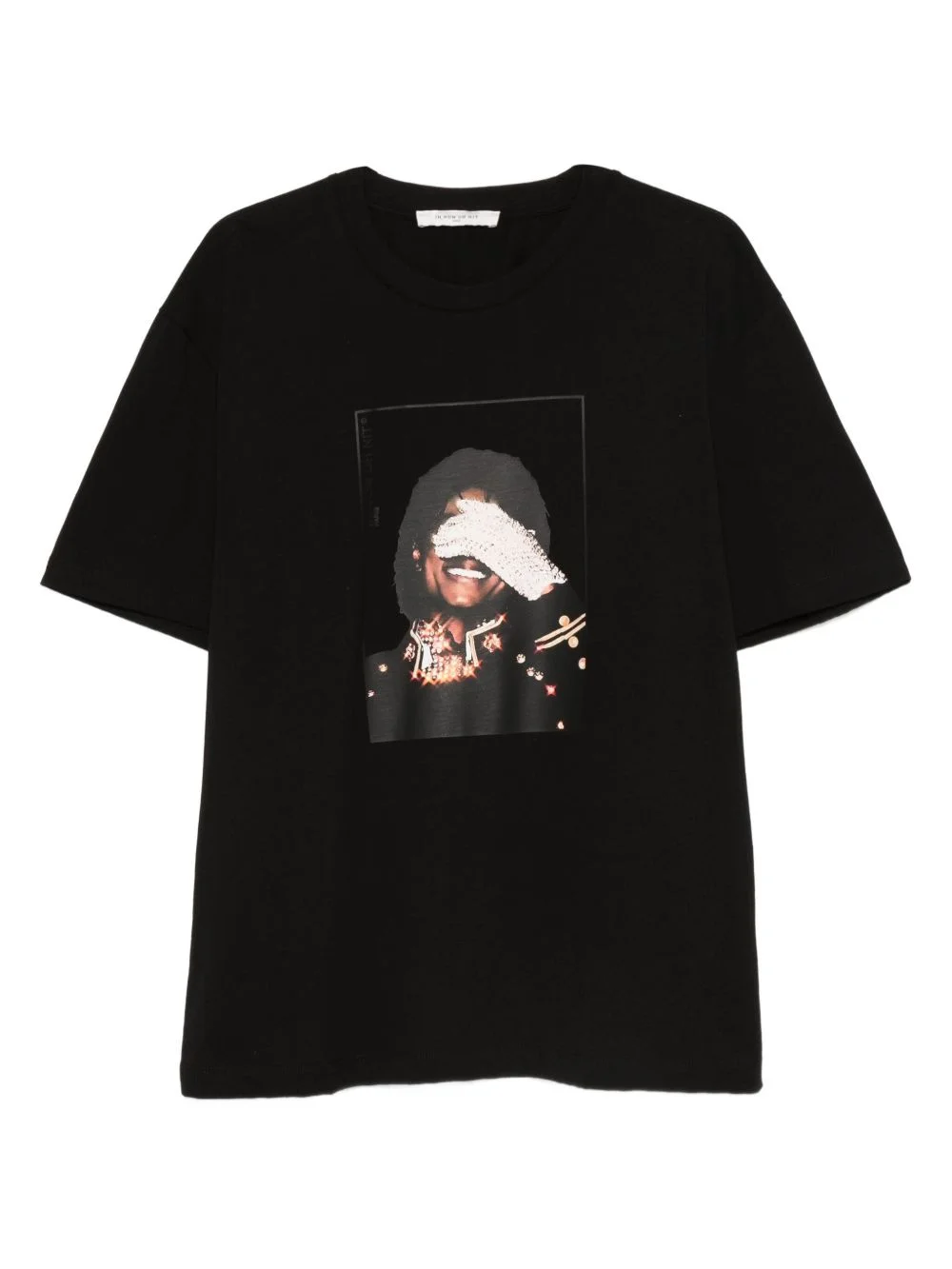 graphic-print T-shirt Highlights - Black - Graphic print - Crew neck - Short sleeves - Straight hem Imported Composition Cotton 100% SIZE & FIT Model measurements Height 6 ft 1 in(1.85 m) Bust/Chest 35.82 in(91 cm) Hips 37.79 in(96 cm) Waist 29.13 in(74 cm) Washing instructions Read Manufacturer Guidelines