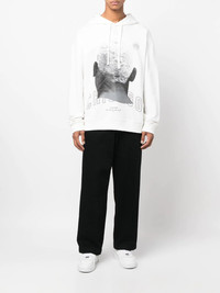 logo drawstring hoodie white cotton graphic print at the chest logo print to the front drawstring hood long sleeves fitted-cuff sleeves Made In Italy Composition Cotton 100% SIZE & FIT Model measurements Height 5 ft 11 in(1.81 m) Bust/Chest 30.31 in(77 cm) Hips 35.03 in(89 cm) Waist 23.22 in(59 cm) FittingInformation This piece fits true to size. We recommend you get your regular size Cut for a loose fit Made with a mid-weight fabric Washing instructions Hand Wash