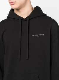 graphic-print longsleeved cotton hoodie graphic-print longsleeved cotton hoodie from IH NOM UH NIT featuring black, cotton, logo print at the chest, graphic print to the rear, drawstring hood, drop shoulder, long sleeves, front pouch pocket and straight hem. Made in Italy Composition Cotton 100% SIZE & FIT Model measurements Height 6 ft 1 in(1.86 m) Bust/Chest 35.4 in(90 cm) Hips 34.6 in(88 cm) Waist 30.7 in(78 cm) FittingInformation This piece fits true to size. We recommend you get your regular size Cut for a loose fit Made with a mid-weight fabric
