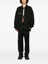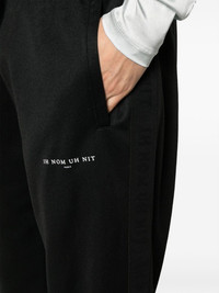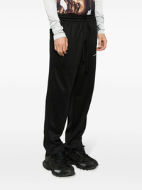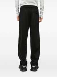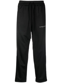 logo-print drawstring trousers Highlights - Jet black - Tonal stitching - Logo print at the leg - Elasticated drawstring waistband - Straight leg - Two side inset pockets - Rear welt pocket - Straight hem Made in Italy Composition Polyester 55%, Cotton 45% SIZE & FIT Model measurements Height 6 ft 2 in(1.87 m) Bust/Chest 36.61 in(93 cm) Hips 35.03 in(89 cm) Waist 27.95 in(71 cm) FittingInformation Designed for a tapered leg, offering a loose unrestricted fit over the leg with a closer fit towards the ankle The elasticated waist allows for a comfortable fit Made from a midweight non-stretch fabric, this piece offers minimal elasticity when worn This piece fits true to size – take your usual size Washing instructions Machine Wash