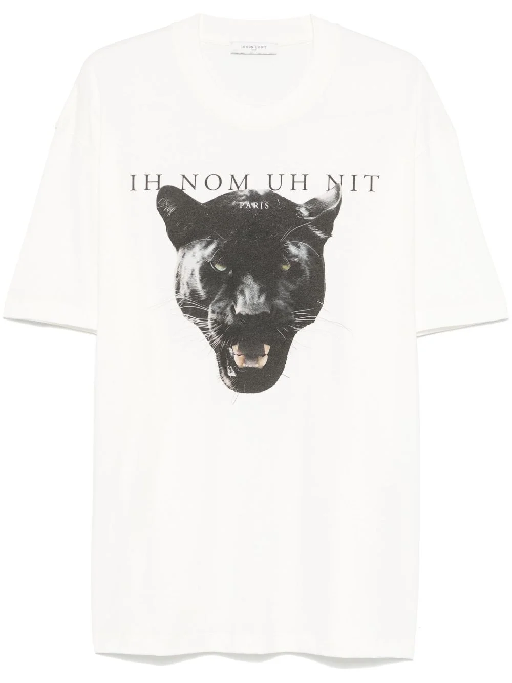 panther-print T-shirt Highlights - Light beige - Logo print at the chest - Crew neck - Short sleeves Made in Italy Composition Cotton 100% SIZE & FIT Model measurements Height 6 ft 2 in(1.89 m) Bust/Chest 35.03 in(89 cm) Hips 38.18 in(97 cm) Waist 29.92 in(76 cm) FittingInformation Designed to be unstructured, offering a loose fit throughout Made from a midweight non-stretch fabric, this piece offers minimal elasticity when worn