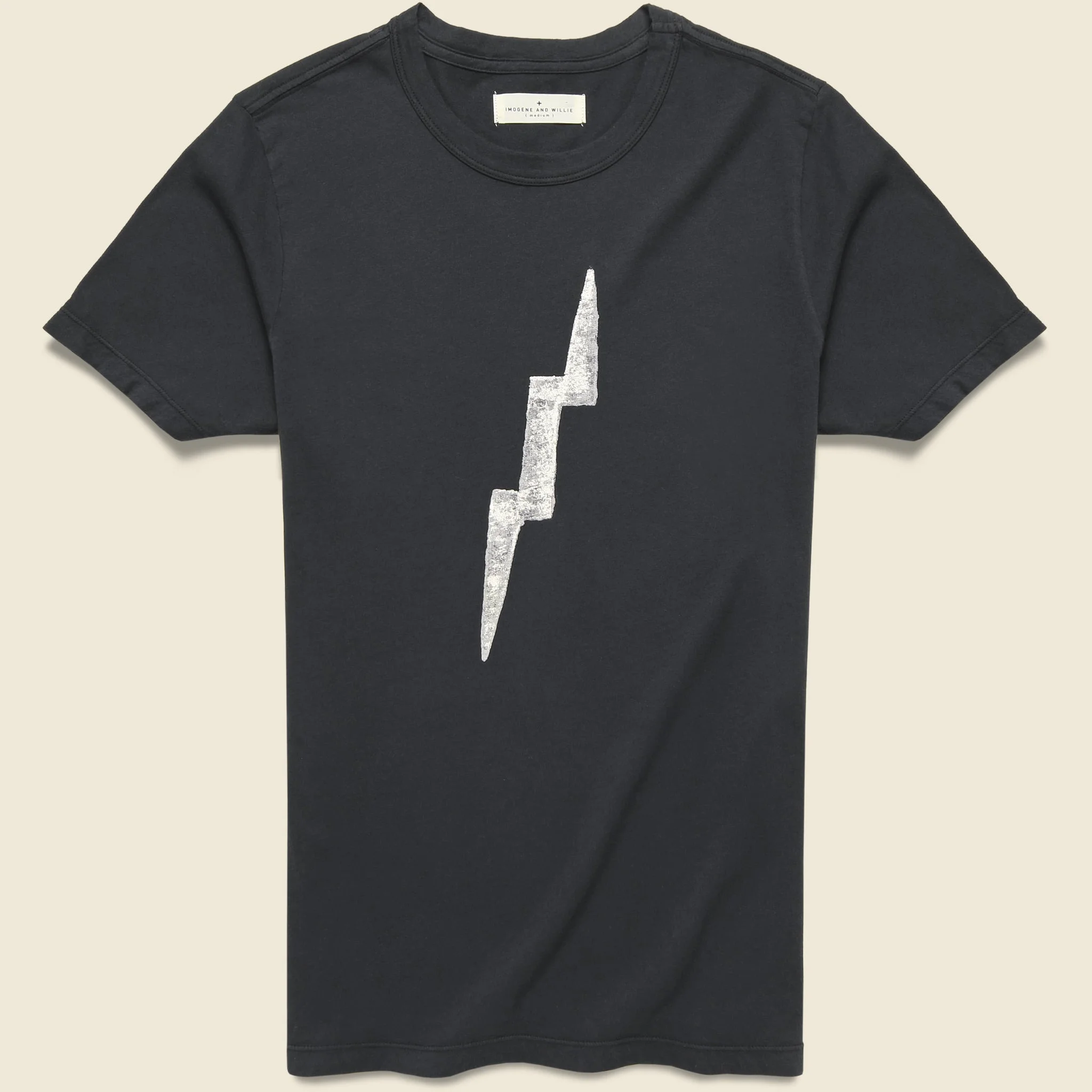 The Bolt Tee from Imogene + Willie is patterned, cut, and sewn by a small team in Los Angeles, then screen printed, one at a time right in the heart of Nashville, TN. The lightning bolt design was developed in-house from hand-drawn art by the brand’s co-founder Matt, and printed on 100% lightweight cotton. Garment-dyed and washed for extra softness, they run a little on the smaller side, so we recommend you go big or go home on this one. - 6oz lightweight cotton - Patterned, cut, and sewn in Los Angeles - Hand-drawn, hand-painted in Nashville - Super soft, vintage feel - Runs small, we recommend taking one size up Made in USA Materials: 100% cotton The following measurements are for size medium: Chest: 37” | Shoulders: 15” | Sleeve: 16” | Length: 25 ½”