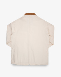 Fall/Winter ’25 introduces a new chore jacket cut to the lineup, blending practicality with contemporary style. This season’s models feature a more versatile pocket layout than previous Iron Heart coveralls, and a slimmer, more flattering silhouette. Key features of this updated cut include flapless chest pockets complete with a pen holder (inspired by our signature work shirts) and large flap-down waist pockets that double as side-entry handwarmers. Each pocket is secured with oversized snap fastenings for quick access, while the main placket uses heavy-duty tack buttons for strength. Made In Japan - Designed by Shinichi Haraki, handmade by WORKS INC. in Japan 10oz Japanese Kurashikizome® Duck Canvas - 100% organic cotton - Plain weave canvas - Kurashikizome® reactive dyed warp and weft - Fade-resistant to ensure a steadfast colour Cut & Features - Chore jacket - 100% cotton, 13 wale reactive-dyed corduroy lining on collar, cuffs & pocket flaps - Copper tack button fastening placket - Oversized copper snaps on pockets, neck & cuffs - Two chest pockets with a pen holder in left pocket - Two dual-entry waist pockets (including handwarmers) - One interior pocket (left breast) - Poly/cotton constructional stitching - Single and double needle stitch construction Optional Upgrades This garment is fitted with Iron Heart branded oversized copper snap fastenings. Want to customise? Upgrade with a choice of alternative ‘heavyweight’ snap options when you add to cart Model Sizing Model Sam is wearing Large One-Washed - Post construction, we wash the completed garment in an aggressive industrial washing machine. This process removes virtually all potential shrinkage. - No further shrinkage is expected when washed according to our care guidelines Care Guidelines - We recommend washing this garment at 30°C with a low (or no) spin cycle. Hang dry, do not tumble dry