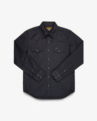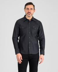This is our classic western shirt, cut from 12oz military-style moleskin fabric. “Moleskin” is characterised by its brushed surface (which mimics the velvety feel of a mole’s fur), creating a fabric that is both substantial and soft, offering comfort and warmth in the colder seasons. Made In Japan - Designed by Shinichi Haraki, handmade by WORKS INC. in Japan 12oz Japanese Moleskin - 100% cotton - Twill weave - Sulphur-dyed warp and weft - This fabric with fade with vintage character through wear and washing Cut & Features - Western shirt - Slim fit - Snap fastenings - Button at collar - Flap down chest pockets - Western-style front and back yokes - Curved hem Optional Upgrades This garment is fitted with Iron Heart branded Permex snap fastenings. Want to customise? Upgrade with a choice of alternative 'heavyweight' snap options when you add to cart Constructional Stitching - Single, double and triple needle stitching - Poly/cotton thread for enhanced strength and durability - Bar tack pocket reinforcements - Chainstitched side seams - Felled internal seams Model Sizing Model Sam is wearing Large One-Washed - Post construction, we wash the completed garment in an aggressive industrial washing machine. This process removes virtually all potential shrinkage. - No further shrinkage is expected when washed according to our care guidelines Care Guidelines - We recommend washing this garment at 30°C with a low (or no) spin cycle. Hang dry, do not tumble dry