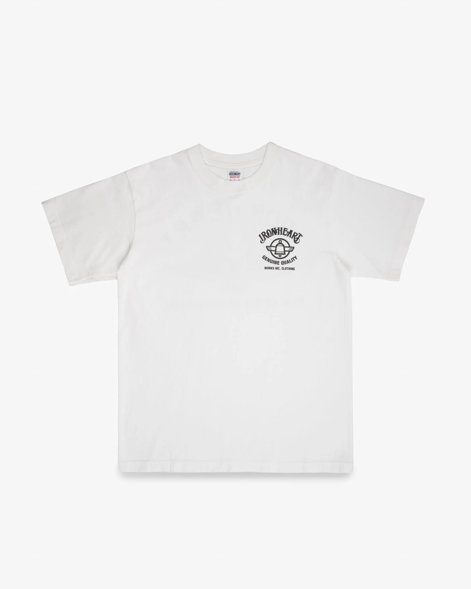 Our 7.5oz loopwheel cotton t-shirt, finished with Iron Heart chest and back prints. Made from 100% cotton, the loopwheeled fabric is knitted on vintage "tsuriam-ki" machines in Wakayama, Japan - one of only two factories in the world still manufacturing authentic loopwheel cloth. This low-tension, circular knitting technique produces very soft, tubular pieces of fabric, allowing for a garment to be constructed without any side seams. Each T-shirt is then cut, sewn and printed in the historic Shitamachi (“Old Town”) district of Tokyo. Made In Japan - Designed by Shinichi Haraki, handmade by WORKS INC. in Japan 7.5oz Japanese Loopwheel Cloth - 100% cotton - Knitted on vintage loopwheel machines in Wakayama, Japan - Reactive-dyed warp and weft yarns - Fade-resistant finish to ensure a steadfast colour Cut & Construction - Custom design Iron Heart prints - Cut, sewn and screen printed in Tokyo Old Town - Crew neck - Poly/cotton stitching - Tube construction - no side seams Model Sizing Model Sam is wearing Large One-Washed - Post construction, we wash the completed garment in an aggressive industrial washing machine. This process removes virtually all potential shrinkage. - No further shrinkage is expected when washed according to our care guidelines Care Guidelines - We recommend washing this garment at 30°C with a low (or no) spin cycle. Hang dry, do not tumble dry