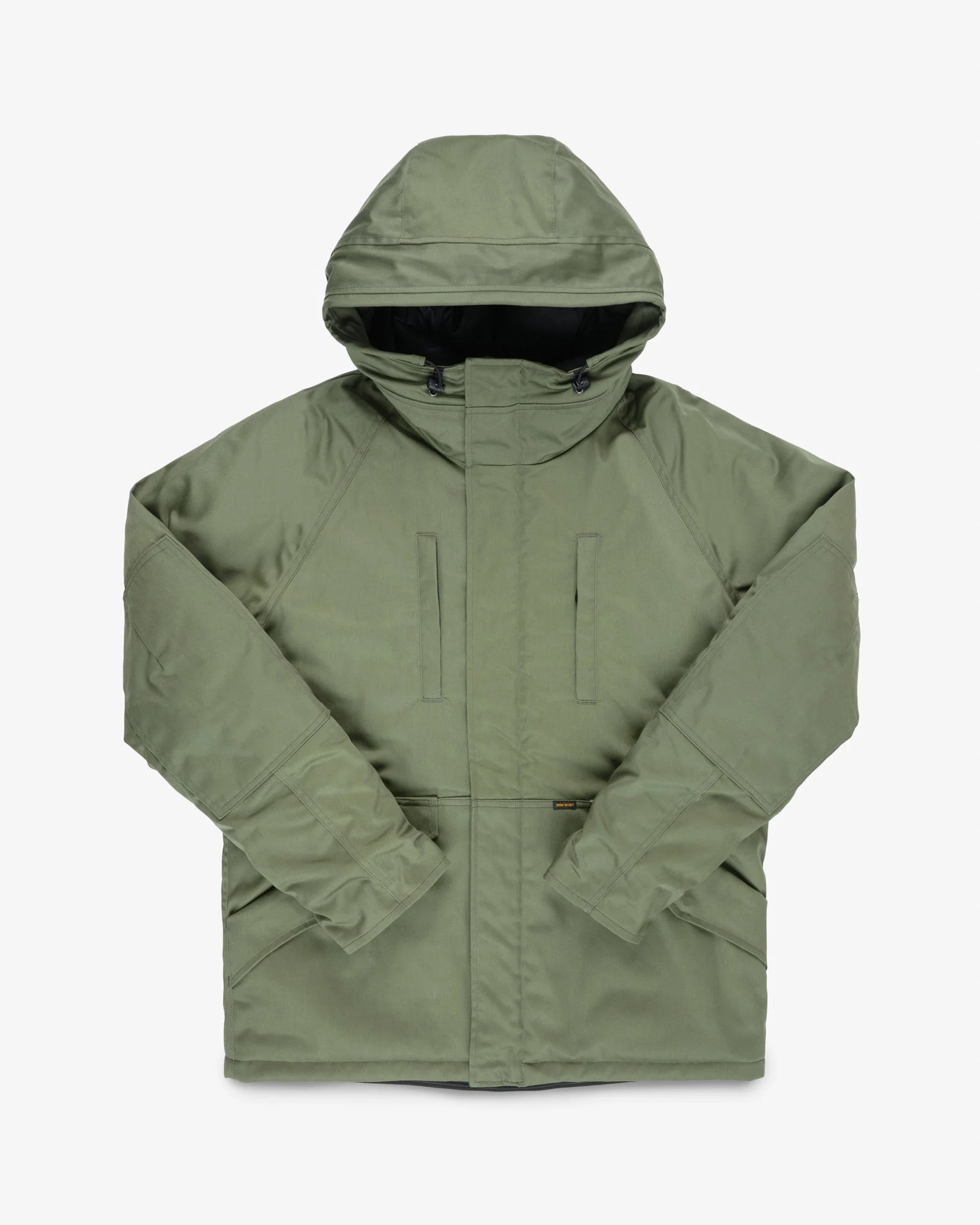 New for Fall/Winter ‘25, our winter parka is based on the same pattern as the IHJ-138 mountaineering jacket—but replaces the eVent® technical fabric outer with 8.2oz Japanese sateen for a more traditional take on the military parka. While the cotton/nylon sateen won’t provide the waterproofing of our technical fabrics, the PrimaLoft® Gold lining remains, delivering high-performance insulation and windproofing. Featuring innovative dual-entry handwarmer/storage pockets, an insulated hood, and an integrated neck warmer, this jacket blends classic style with modern performance—perfect for cold, dry days in the city, on the trails, or on the terraces. Made In Japan - Designed by Shinichi Haraki, handmade by WORKS INC. in Japan 8oz Japanese Sateen Cloth - 50% cotton / 50% nylon - Sateen weave - Reactive dyed warp and weft - Fade-resistant to ensure a steadfast colour PrimaLoft® Gold Lining - 100% nylon - Patented synthetic microfibre thermal insulation Cut & Features - Parka jacket - Insulated hood with elasticated drawstring - Integrated neck warmer - Two-way YKK main zipper covered with snap closure placket - Two covered zipped chest pockets - Two dual entry waist pockets with snap and velcro fastenings - Microfleece handwarmer pocket lining - Internal pocket with velcro closure - Elasticated drawstring at hem - Knitted storm cuffs - Velcro fastening cuff cinches - Raglan sleeve construction - Reinforced elbows - Single and double needle stitch construction Model Sizing - Model Michael is wearing a Large Model Sizing Model Sam is wearing Large One-Washed - Post construction, we wash the completed garment in an aggressive industrial washing machine. This process removes virtually all potential shrinkage. - No further shrinkage is expected when washed according to our care guidelines Care Guidelines - We recommend washing this garment at 30°C with a low (or no) spin cycle. Hang dry, do not tumble dry