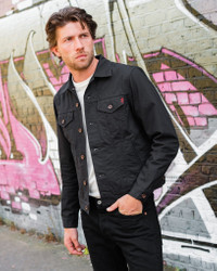 Our modified take on the classic Type III trucker jacket—offering a slightly longer than traditional body, with the addition of side handwarmer pockets—cut from a 9oz plain weave cotton canvas. This particular canvas is woven using ringspun American cotton yarns, which are thicker, stronger and more durable than open-ended yarns commonly used for lower-grade fabrics. This creates a smooth yet rugged weave with more heft than our 7oz “Weather” fabric, while being lighter and more pliable than our stiffer 17oz duck canvas—an ideal weight for a spring/summer jacket. The fabrics yarns are sulphur dyed, allowing the jacket's appearance to gradually fade and evolve with vintage character. Made In Japan - Designed by Shinichi Haraki, handmade by WORKS INC. in Japan 9oz Japanese Canvas - 100% US Cotton - Plain weave canvas - Sulphur dyed warp and weft yarns - This fabric will fade with vintage character through wear and washing Cut & Features - Inspired by the iconic Levi’s Type III trucker jacket - Slightly longer than traditional body length - Flap-down chest pockets - Handwarmer pockets, the construction of which creates two internal pockets - Dual hem cinches Hardware & Construction - Iron Heart branded tack button fastenings - Poly/cotton stitching - Single and double needle chainstitch construction - Internal felled seams Model Sizing Model Rudi wears Large One-Washed - Post construction, we wash the completed garment in an aggressive industrial washing machine. This process removes virtually all potential shrinkage. - No further shrinkage is expected when washed according to our care guidelines Care Guidelines - We recommend washing this garment at 30°C with a low (or no) spin cycle. Hang dry, do not tumble dry