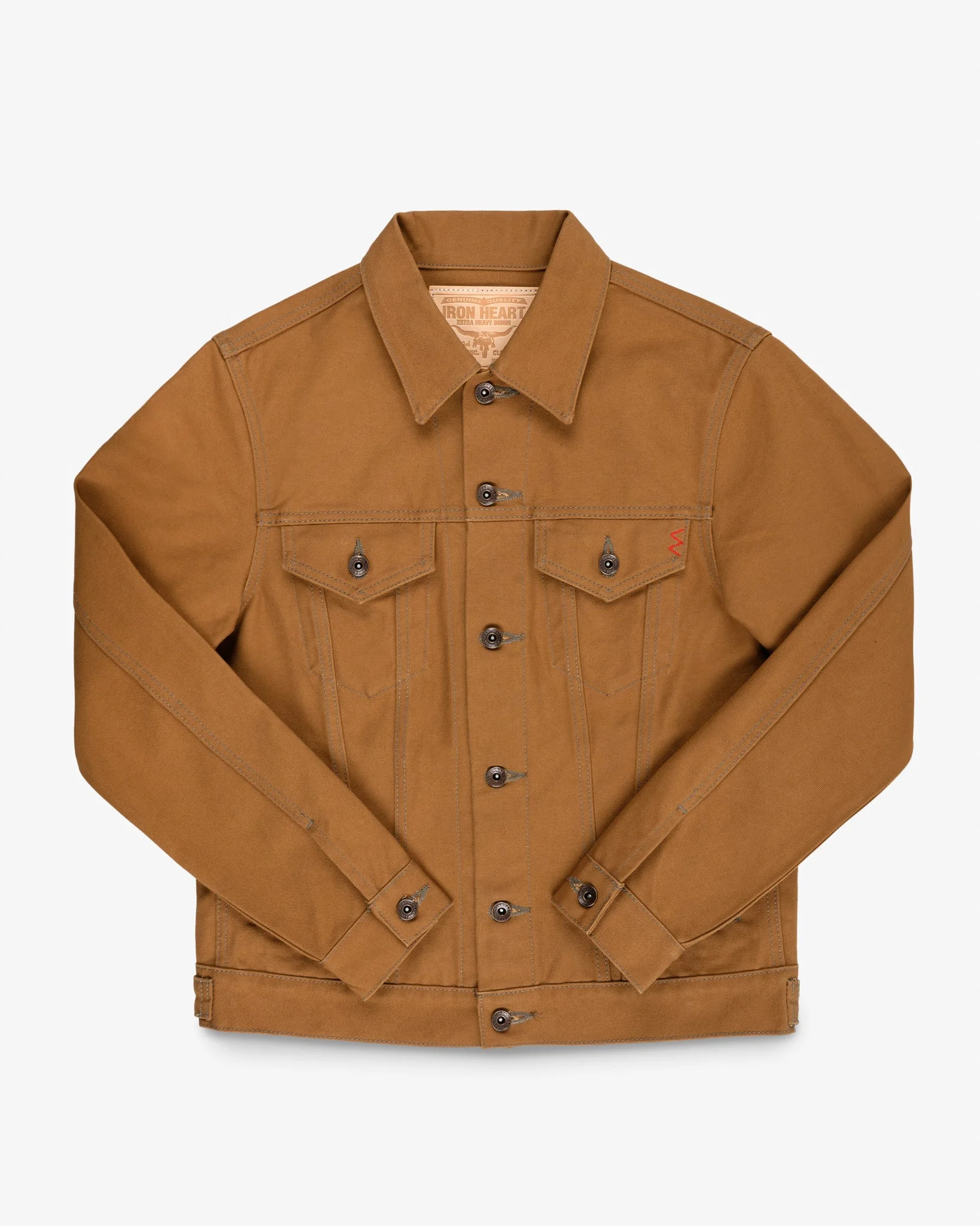 Made In Japan - Designed by Shinichi Haraki, handmade by WORKS INC. in Japan 17oz Japanese Duck Canvas - Brown - 100% cotton - Brown warp and weft - Plain weave - This fabric will slowly fade through wear and washing Cut & Features - Inspired by the iconic Levi’s Type III trucker jacket - Slightly longer than traditional body length - Flap-down chest pockets - Handwarmer pockets, the construction of which creates two internal pockets - Dual hem cinches Hardware & Construction - Iron Heart branded tack button fastenings - Poly/cotton stitching - Single and double needle chainstitch construction - Internal felled seams Model Sizing - Model Michael is wearing a Large Sanforized & One-Washed - Sanforization is a post-weave mechanical process which removes most potential shrinkage from a fabric before garment construction - To further reduce the risk of shrinkage, we wash the completed garment in an aggressive industrial washing machine. This process removes virtually all potential shrinkage. - No further shrinkage is expected when washed according to our care guidelines Care Guidelines - We recommend washing this garment at 30°C with a low (or no) spin cycle. Hang dry, do not tumble dry