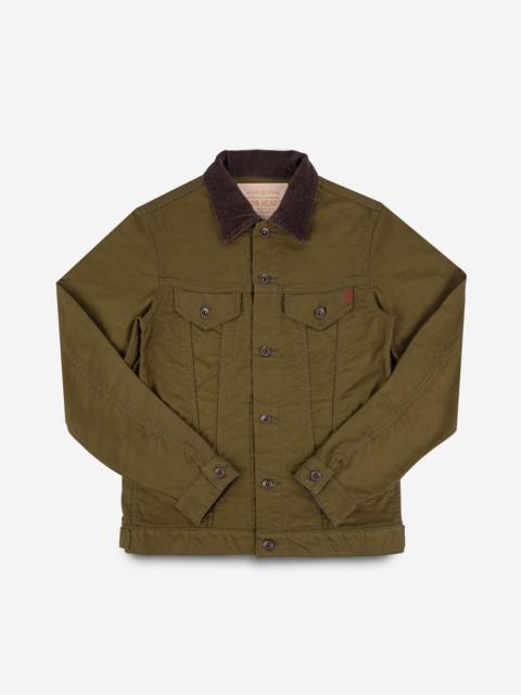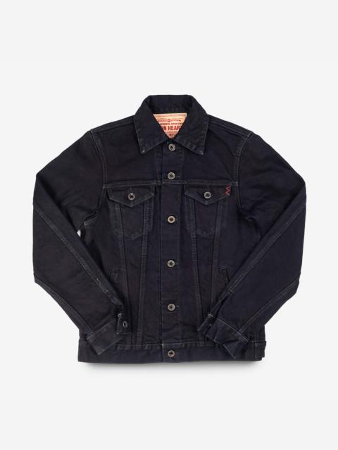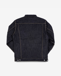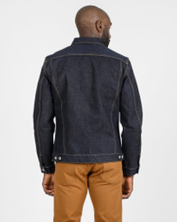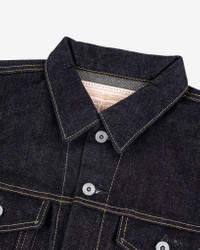 Inspired by the classic Levi's design from 1962, our modified take on the “Type III” jacket is cut slightly longer in the body, with the addition of hand-warmer pockets — the construction of which also creates two internal storage pockets. Made In Japan - Designed by Shinichi Haraki, handmade by WORKS INC. in Japan 19oz Left-Hand Twill Japanese Selvedge Denim - 100% cotton - Woven under high tension to create a stiff fabric with an intense indigo appearance - Indigo rope-dyed warp / white weft - Left-hand twill weave - This denim will fade naturally through wear and washing Cut & Features - Inspired by the iconic Levi’s Type III trucker jacket - Slightly longer than traditional body length - Flap-down chest pockets - Handwarmer pockets, the construction of which creates two internal pockets - Dual hem cinches Hardware & Construction - Iron Heart branded tack button fastenings - Poly/cotton stitching - Single and double needle chainstitch construction - Internal felled seams Selvedge ID - Placket selvedge ID Model Sizing - Model Michael is wearing a Large Unsanforized & Unwashed - This is a raw denim that has not been sanforized. Sanforization is a post-weave mechanical process that removes most potential shrinkage from a fabric before garment construction. Therefore, since this is an unsanforized fabric, this jacket is shrink-to-fit and requires soaking or washing to achieve its true size - Unlike most of our jeans and jackets, we have also not washed the finished garment in an industrial washing machine, so shrinkage remains - The shrinkage will depend on how hot and vigorously the jacket is washed. Expect approximately 1" to 1.5" shrinkage in the sleeve and body length, with all other dimensions shrinking proportionately Care Guidelines - We recommend washing this garment at 30°C with a low (or no) spin cycle. Hang dry, do not tumble dry