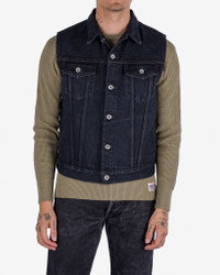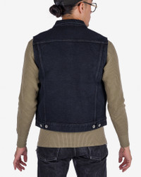 Our "trucker" vest in our super heavy yet super soft 21oz indigo selvedge denim overdyed black. Based on a traditional Type III jacket modified with a slightly longer body and side handwarmer pockets. Iron Heart's first ever overdyed vest (what took us so long?) Made In Japan - Designed by Shinichi Haraki, handmade by WORKS INC. in Japan 21oz Japanese Selvedge Denim - Overdyed Black - 100% cotton - Woven with a double twisted weft yarn - Indigo rope-dyed warp / white weft - Right-hand twill weave - Post-construction, this garment is overdyed using black direct dye - This denim will fade with indigo-tinged hues through wear and washing Type III Vest - Cut & Features - Modified Type III Vest - Two chest pockets with button-down flaps - Hand warmer pockets, the construction of which creates two internal pockets Hardware & Construction - Iron Heart branded tack button fastenings - All felled seam construction - Taped arm openings Model Sizing Model Johnny wears Large Sanforized, One-Washed & Overdyed - Sanforization is a post-weave mechanical process which removes most potential shrinkage from a fabric before garment construction - To further reduce the risk of shrinkage, we wash the completed garment in an aggressive industrial washing machine. - Following this, a high-temperature overdyeing process removes any remaining potential shrinkage - This garment may fit slightly smaller than its non-overdyed counterpart. Please refer to our measurement charts carefully - No further shrinkage is expected if washed in accordance with our guidelines Care Guidelines - We recommend washing this garment at 30°C with a low (or no) spin cycle. Hang dry, do not tumble dry