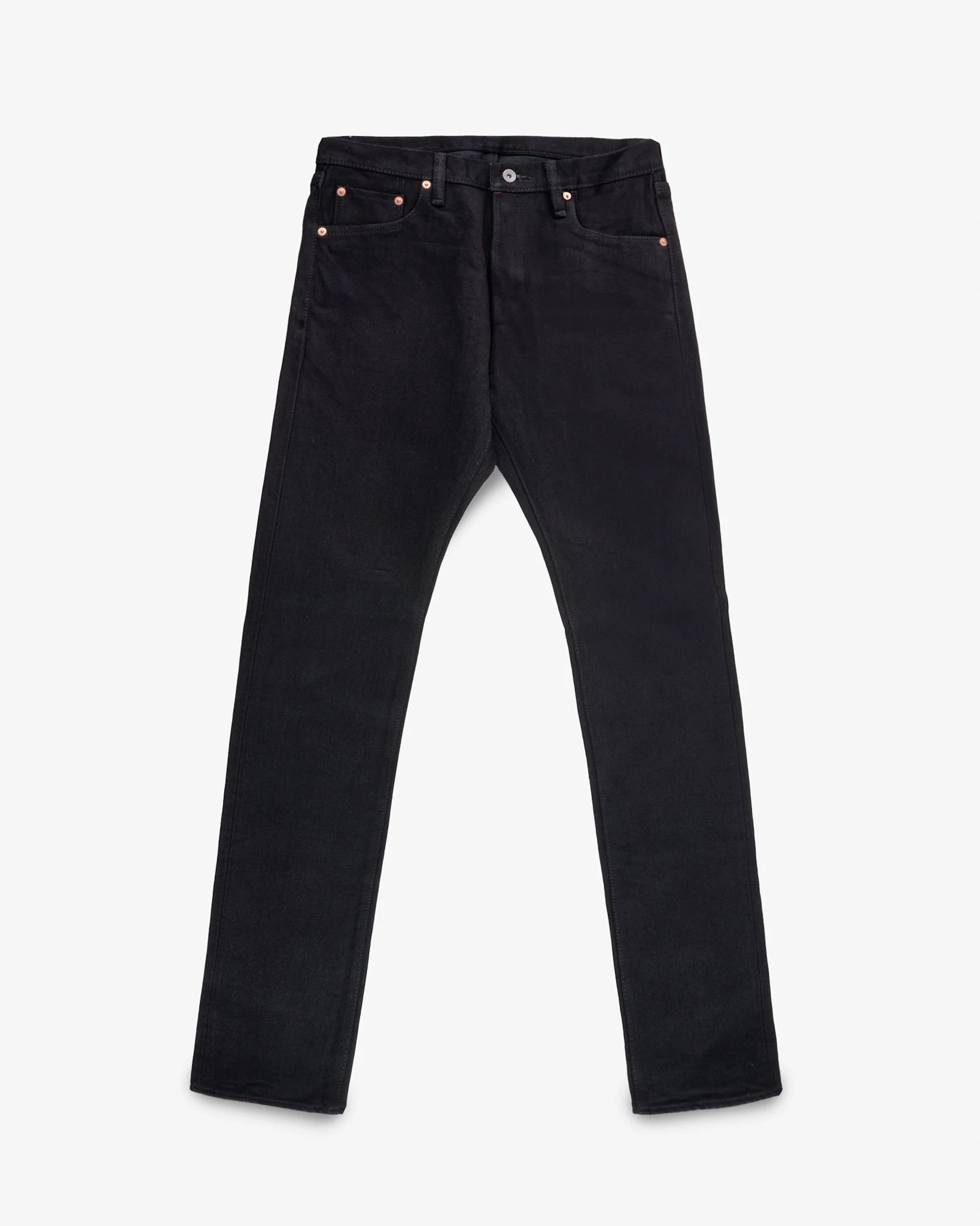 Our medium/high-rise slim jeans, cut from 21oz Shinayaka black selvedge denim for a little more stretch. Specifically designed to make our slimmer jeans more accessible and comfortable, the weft yarn of this denim includes 2% polyurethane to add flexibility. Woven with black sulphur-dyed warp and weft yarns, this denim feels just like our signature 21oz 100% cotton weave and will gradually fade to grey with wear and washing. Read the in-depth review of the Shinayka Denim on the Forum. Made In Japan - Designed by Shinichi Haraki, handmade by WORKS INC. in Japan 555 Slim Cut - The slimmest fitting jeans cut in the Iron Heart lineup - Medium/high rise - Slim fit leg profile - Classic 5-pocket design 21oz Japanese Shinayaka Selvedge Denim - Black - 98% cotton / 2% polyurethane - Polyureathane added to increase stretch - Woven with a double twisted weft yarn - Black sulphur-dyed warp and weft - This denim will fade naturally with wear and washing Hardware & Construction - Traditional 3-button fly - Iron Heart branded tack button at waistband - Works Inc branded pocket rivets - Hidden rivets on rear pockets - Poly/cotton stitching for increased strength - Single and double needle chain stitch construction - Belt loops anchored at three points and sewn into the waistband - Heavy cotton pocket bags and lined rear pockets Selvedge ID - Sideseam, fly, and coin pocket selvedge ID Leather Patch - Heavyweight vegetable-tanned steerhide - Natural finish - Belt-through design - Debossed Iron Heart graphic - Please note: Continued washing (especially at higher temperatures) may cause shrinkage and deformities Sanforized & One-Washed - Sanforization is a post-weave mechanical process which removes most potential shrinkage from a fabric before garment construction - To further reduce the risk of shrinkage, we wash the completed garment in an aggressive industrial washing machine. This process removes virtually all potential shrinkage. - No further shrinkage is expected when washed according to our care guidelines Stretch Details - The waist will stretch out approximately 1" with wear. All other dimensions that are put under pressure will stretch proportionally to the waist Care Guidelines - We recommend washing this garment at 30°C with a low (or no) spin cycle. Hang dry, do not tumble dry