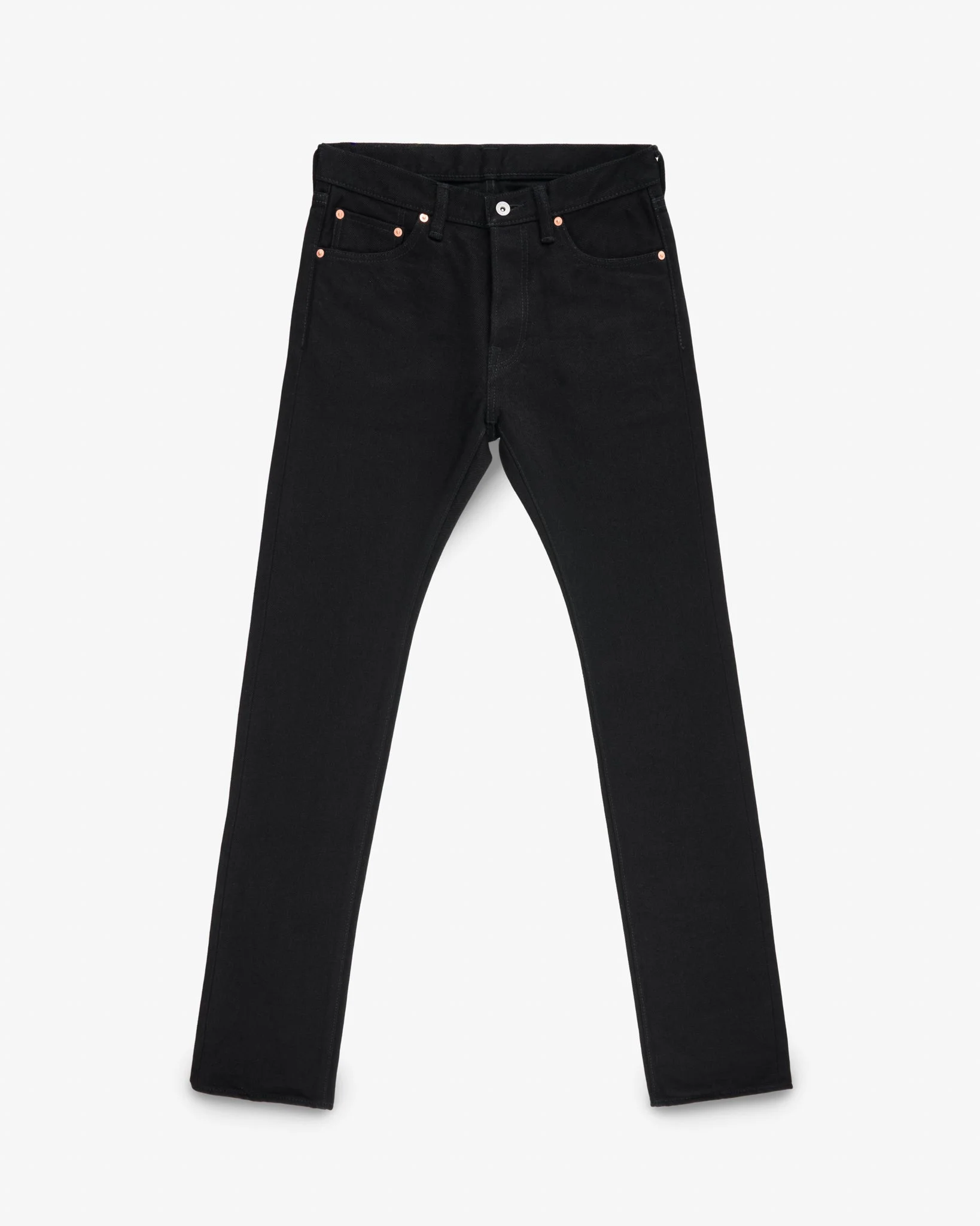 Our slim cut, medium/high rise jeans, made from 21oz “Superblack Fades to Grey” (SBG) selvedge denim. This heavyweight fabric is woven with a black sulphur-dyed warp and a black reactive-dyed weft. With wear and washing, the warp will gradually fade to grey, creating a striking contrast with the fade-resistant weft, which remains jet black. Utilising a double-twisted weft yarn and lower tension weave, our 21oz denim fabrics are heavy and tough, yet soft and breathable than other heavyweight weaves — creating a pair of jeans that mould to the wearer’s body shape like no other. Made In Japan - Designed by Shinichi Haraki, handmade by WORKS INC. in Japan 555 Slim Cut - The slimmest fitting jeans cut in the Iron Heart lineup - Medium/high rise - Slim fit leg profile - Classic 5-pocket design 21oz Japanese Selvedge Denim - Superblack-Fades-To-Grey (SBG) - 100% cotton - Woven with a double twisted weft yarn - Black sulphur-dyed warp / black reactive-dyed weft - Right-hand twill weave - The warp yarns of this denim will fade to grey through wear and washing, while the fade-resistant weft will remain black Hardware & Construction - Traditional 3-button fly - Iron Heart branded tack button at waistband - Works Inc branded pocket rivets - Hidden rivets on rear pockets - Poly/cotton stitching for increased strength - Single and double needle chain stitch construction - Belt loops anchored at three points and sewn into the waistband - Heavy cotton pocket bags and lined rear pockets Selvedge ID - Sideseam, fly, and coin pocket selvedge ID Leather Patch - Heavyweight vegetable-tanned steerhide - Natural finish - Belt-through design - Debossed Iron Heart graphic - Please note: Continued washing (especially at higher temperatures) may cause shrinkage and deformities Sanforized & One-Washed - Sanforization is a post-weave mechanical process which removes most potential shrinkage from a fabric before garment construction - To further reduce the risk of shrinkage, we wash the completed garment in an aggressive industrial washing machine. This process removes virtually all potential shrinkage. - No further shrinkage is expected when washed according to our care guidelines Stretch Details - The waist will stretch out approximately 1" with wear. All other dimensions that are put under pressure will stretch proportionally to the waist Care Guidelines - We recommend washing this garment at 30°C with a low (or no) spin cycle. Hang dry, do not tumble dry