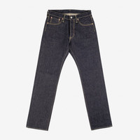 Our classic straight cut jean made from 14oz indigo selvedge denim which is made with a double twisted weft yarn (the same construction technique as our 21oz selvedge denim). This is the "least heavy" Japanese jean denim. Details - Made in Japan - Classic straight cut - Medium rise - 14oz Japanese selvedge denim - Woven with a double twisted weft yarn (the same as our 21oz Selvedge denim) - Lined rear pockets - Button fly and hidden rivets - Belt loops sewn into waistband - Poly/cotton constructional stitching - Selvedge side seams and fly construction - Sanforized and one-washed - little to no shrinkage to be expected. - The waist will stretch out approximately one inch with wear - Other dimensions will stretch proportionately to the waist - Model Adam wears tag 33, Giles wears tag 34 - Worn with Iron Heart Int'l x Wesco® Foot Patrol - Need a shorter length? You will be prompted on checkout to order hemming if required